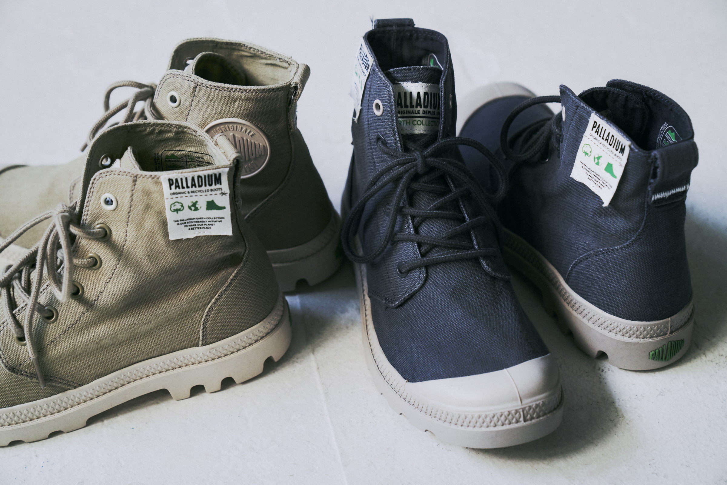 1990年代にエコシューズをスタートし、フランスではエコのパイオニアとして知られるパラディウム。オーガニックキャンバスや天然素材のコルクをラミネートしたインソールなど、エコロジカルなパンパハイ。