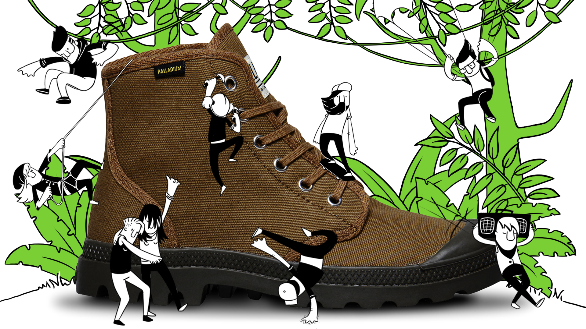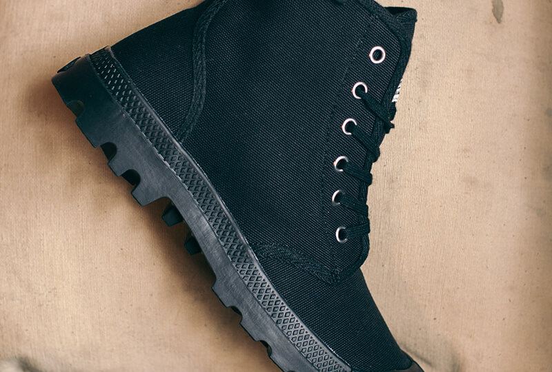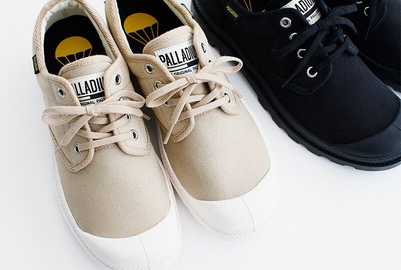 PALLADIUMは、航空機タイヤを製造する会社として1920年にフランスで誕生し、キャンバス地と加硫ゴムを組み合わせた耐久性に優れた製法で、世界規模でシェアを獲得。第二次大戦後、需要の減少に伴い、ゴムとキャンバスの専門知識を活かしたキャンバスブーツの製造をスタートしました。