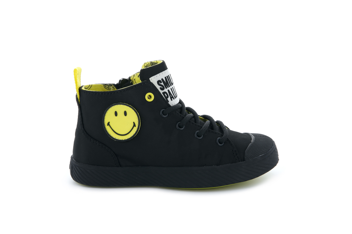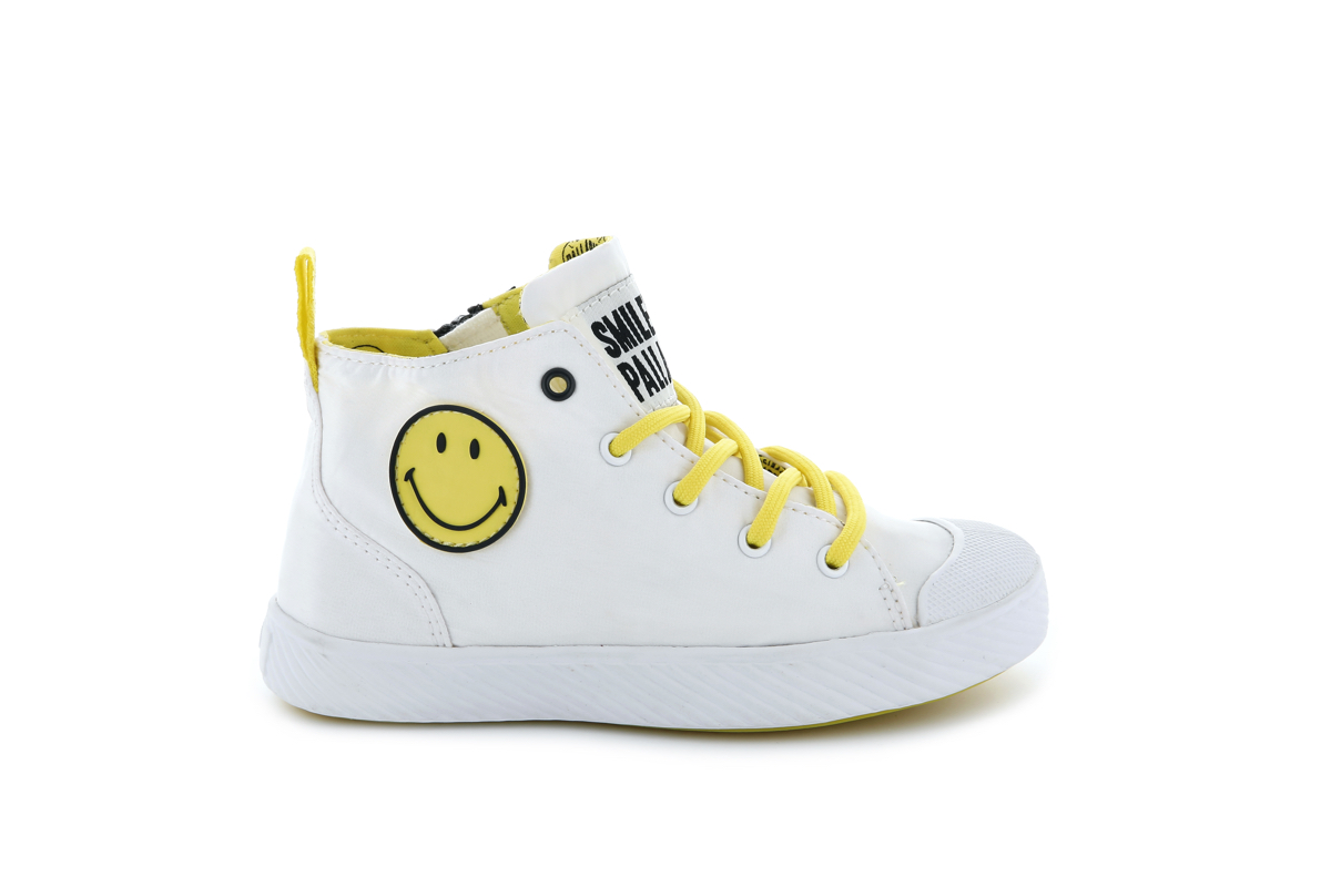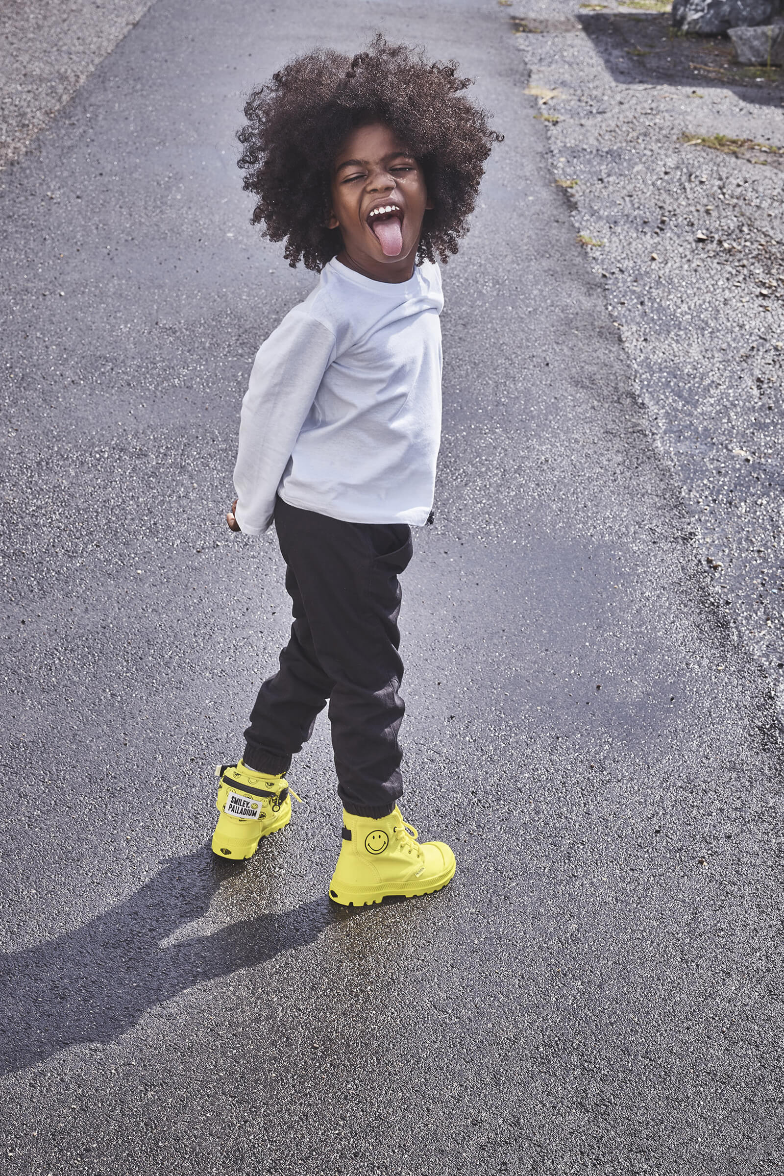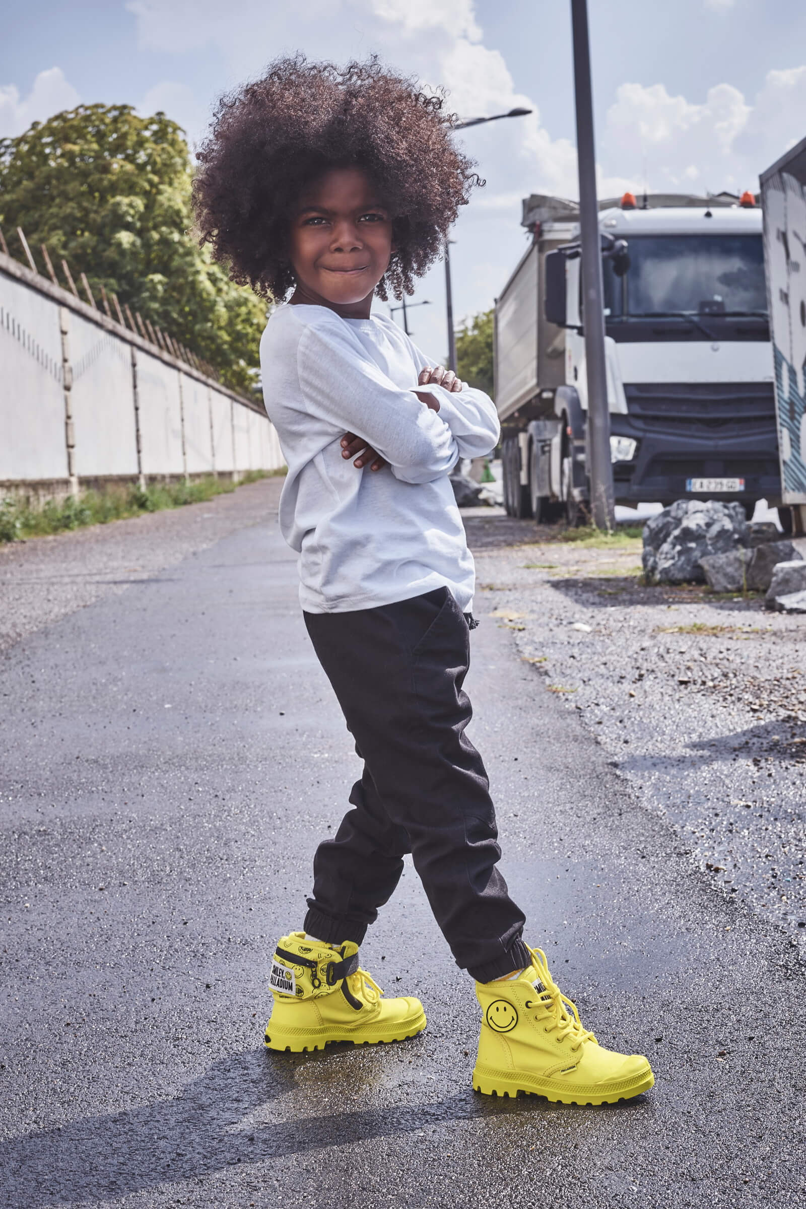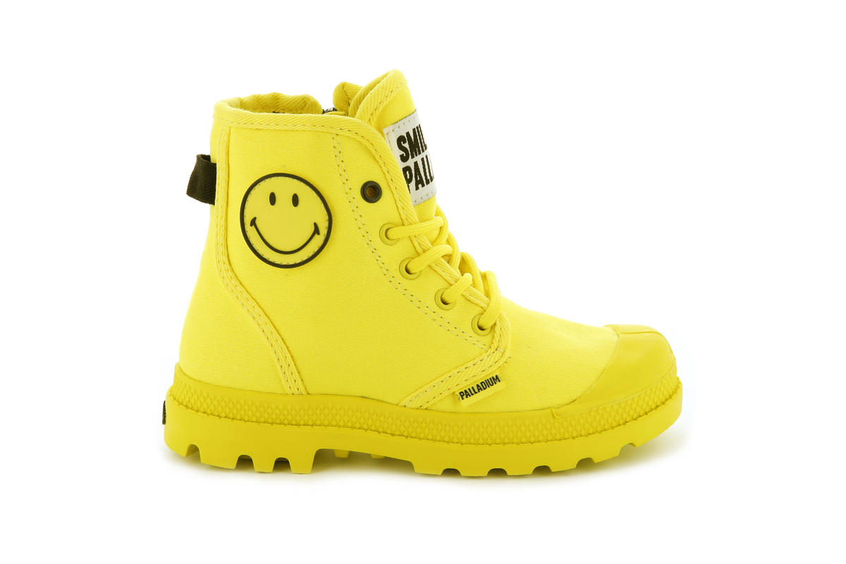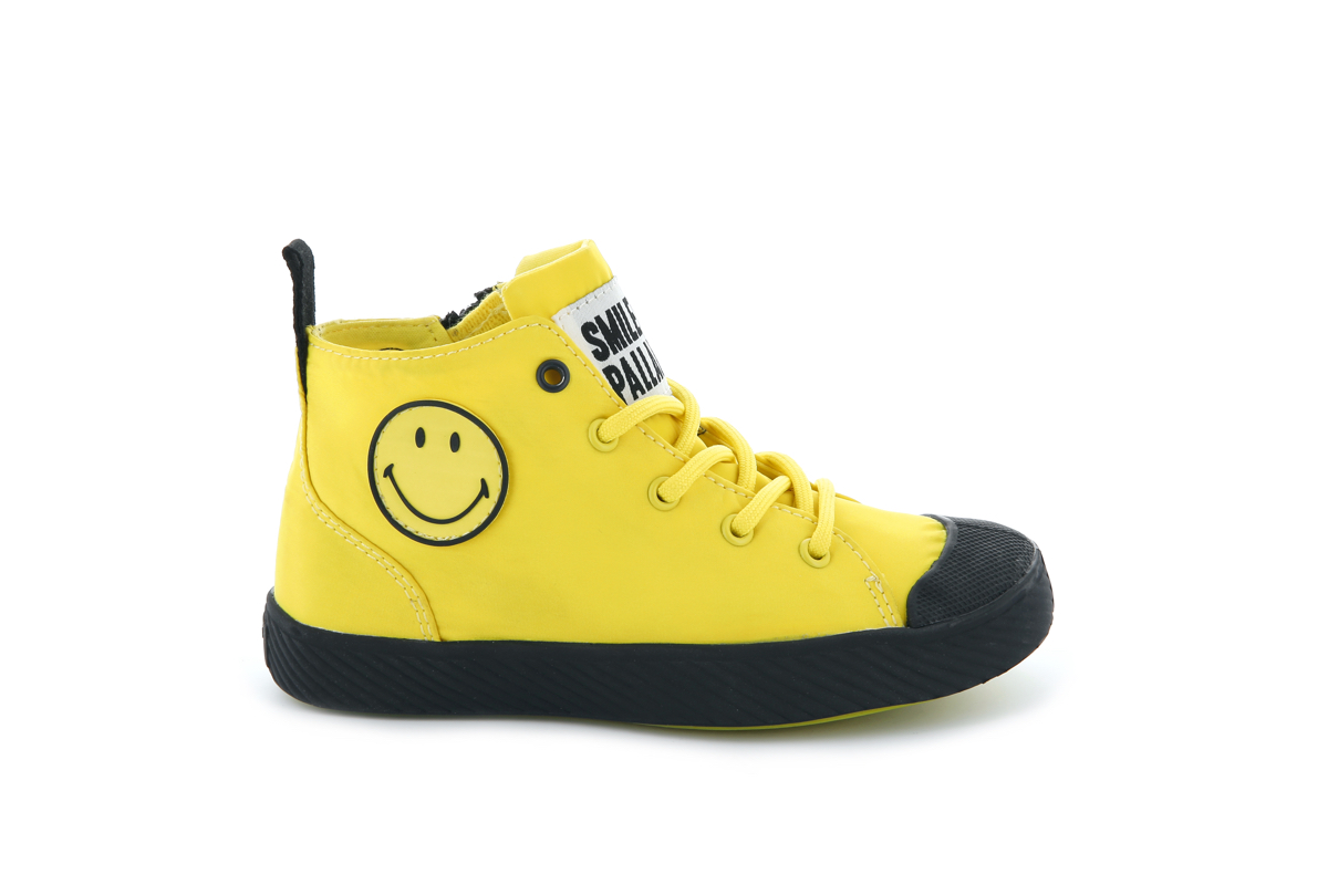 フランスのブーツブランド「Palladium」(パラディウム)が、ハッピーブランド「Smiley」(スマイリー)との取り組みをキッズにも拡大。この夏発売をスタートした大人用ブーツに続いて、キッズ用ブーツをスタート。10月5日(金)より、2モデル5カラーのキッズブーツを、パラディウムのオフィシャルストアS-Rush原宿店や、S-Rush Online Storeなど店舗限定で発売します。