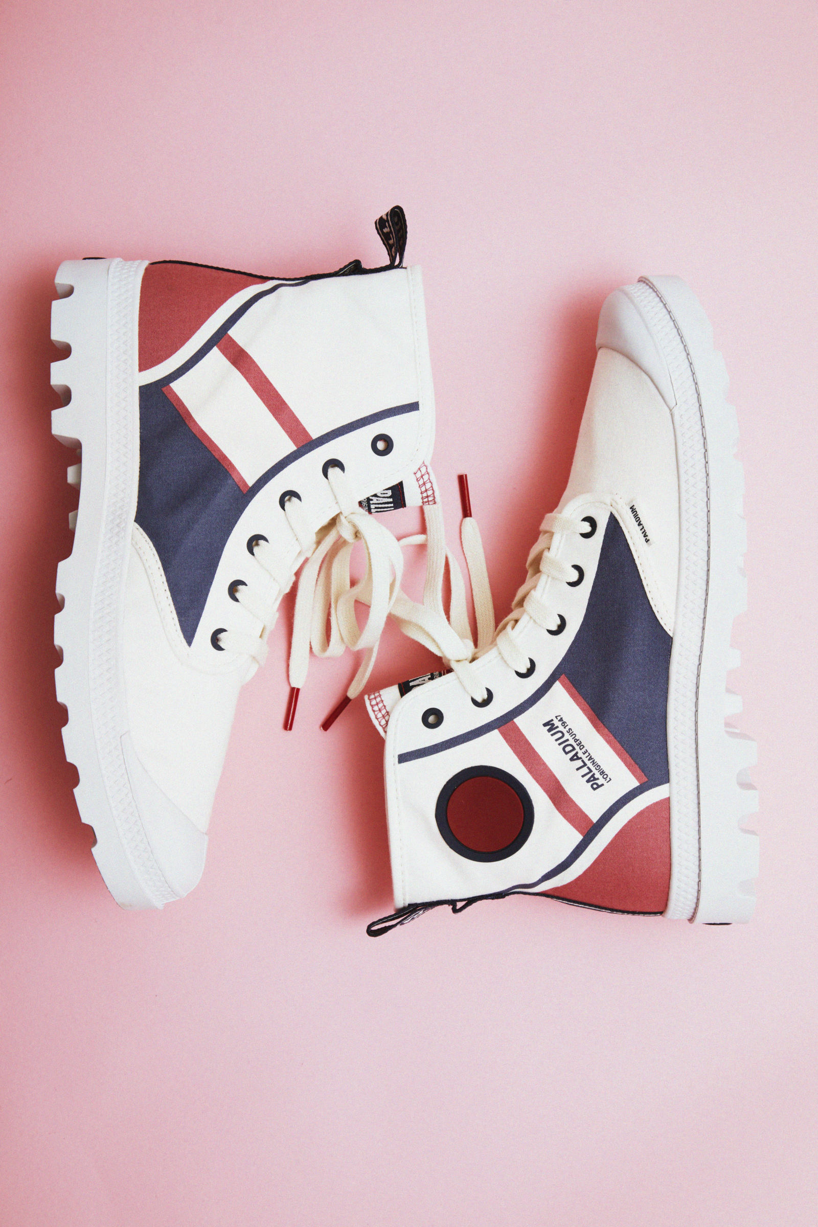 シューレースに取り外し可能なスローガンラベル、かかと部分にはメッセージラベルを飾り、パラディウムの冒険心が表現されている。アウトソールには、軽量でクッション性・グリップ性に優れた「LITE-TECH」、アッパーには、柔らかいバリスティックナイロンを採用し、夏でも快適に過ごせます。