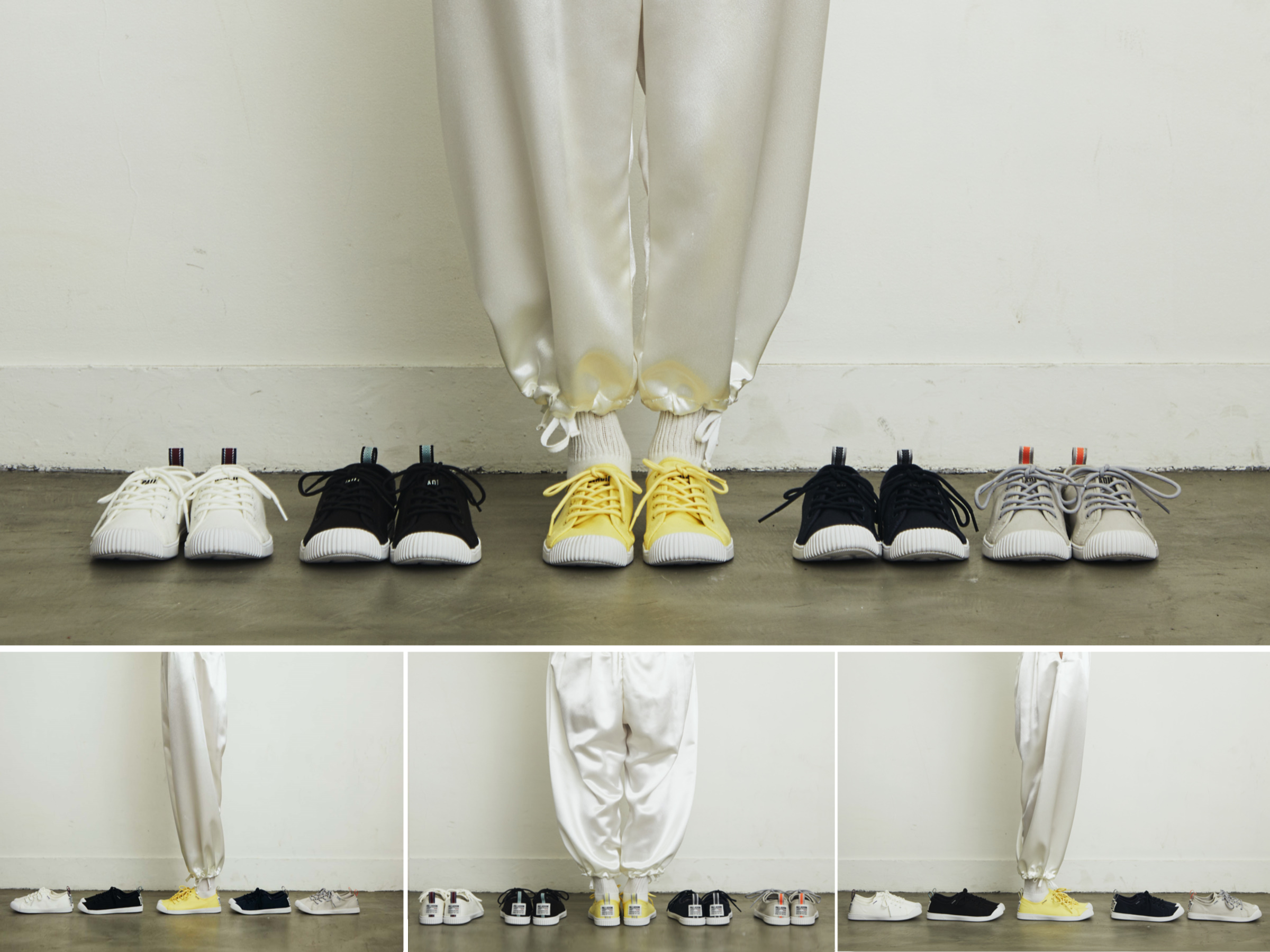 シルエットがきれいに見えるスニーカー。クッション性、屈曲性に優れたアウトソールを開発し、裏地もコットン100%で、衝撃を吸収するインソールはコットンでカバーしたEVA。この時期に求められる快適さに、シリーズとしてはスリッポンとミュールを展開。夏の足元を気軽にオシャレに。