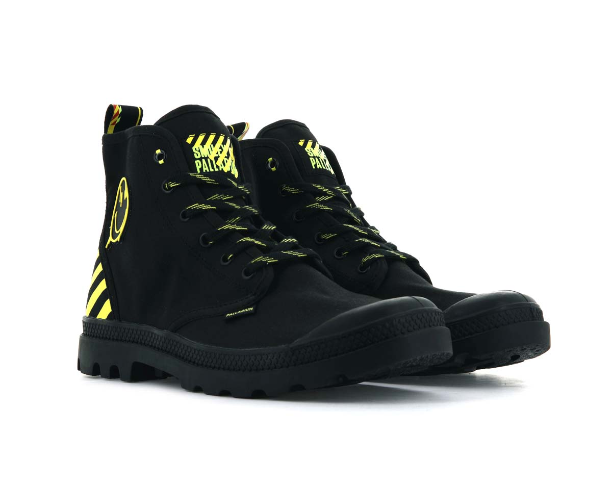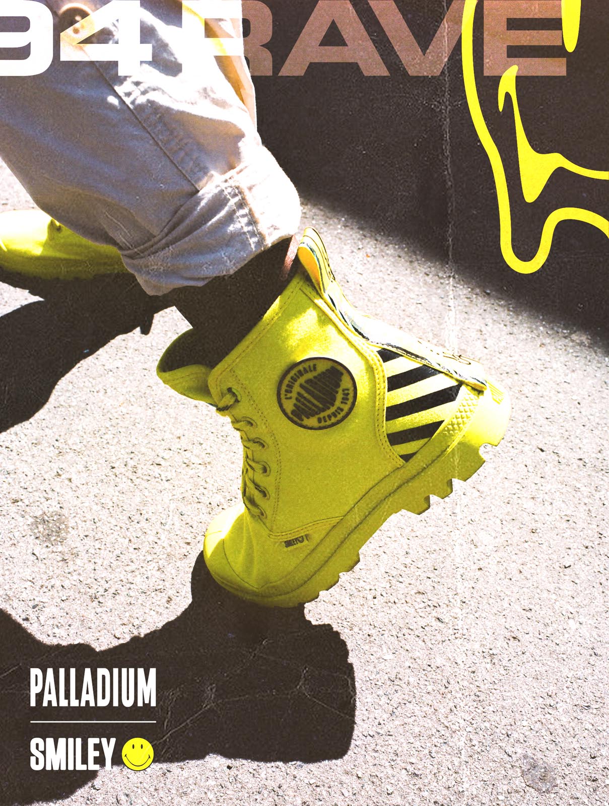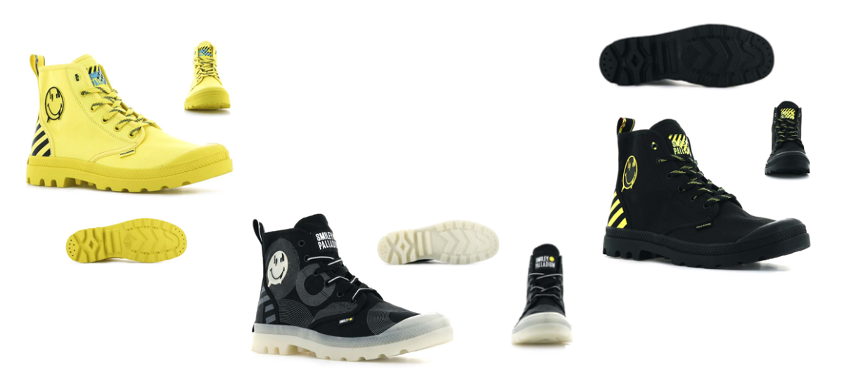 フランスのブーツブランド「Palladium(パラディウム)」とハッピーブランド「Smiley(スマイリー)」が3回目となるコラボレーションを実施。今回のテーマは、80-90年代の「Rave(レイヴ・熱狂)」。