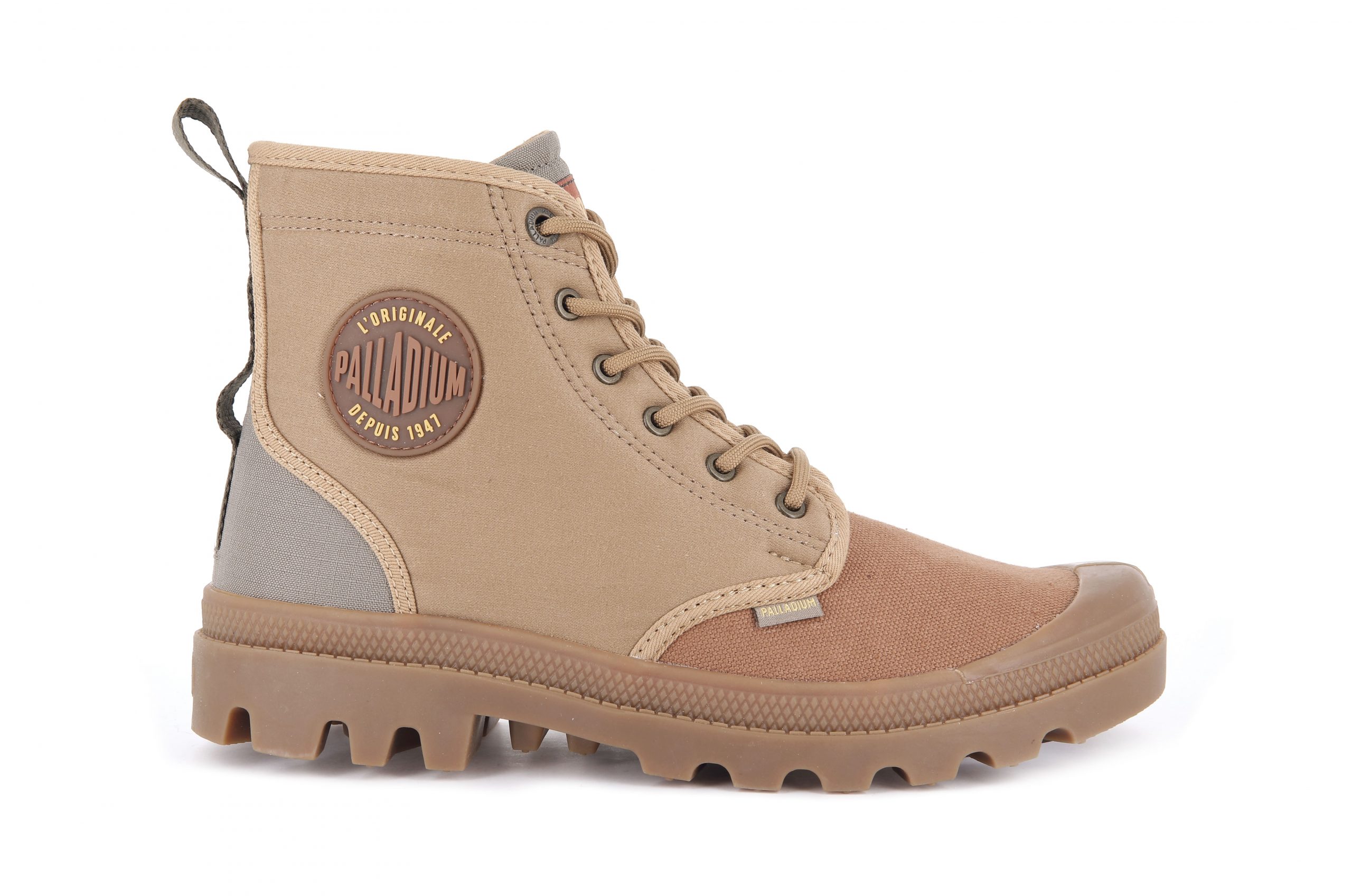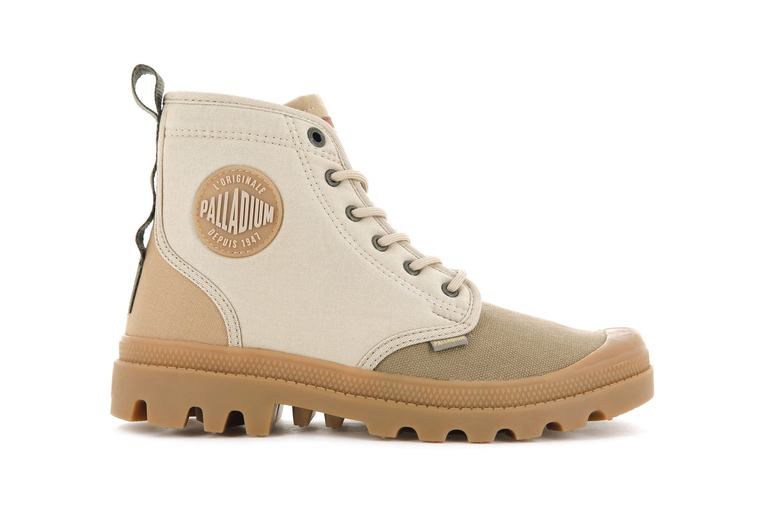 1947年にフランス軍のリクエストから⽣まれた象徴的なシューズである「PAMPA:パンパ」のスタイルを守り、アッパーにはオーガニックキャンバス、ソフトモールスキンキャンバス、リップストップをミックスし、シェードカラーのコンビネーションが、コントラストとボリューム感を出しています。