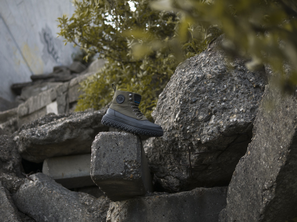 70年の歴史を経て、パラディウムのオリジンでもある航空機タイヤからインスピレーションを受け、グリップ力に優れたアウトソールを開発。タイヤのような丸みを帯びた極厚ソールは、そのグリップ力から、雨や雪、砂利や砂といった気候や地形を選ばずに活躍。パラディウムらしいミリタリーテイスト溢れるシリーズです。