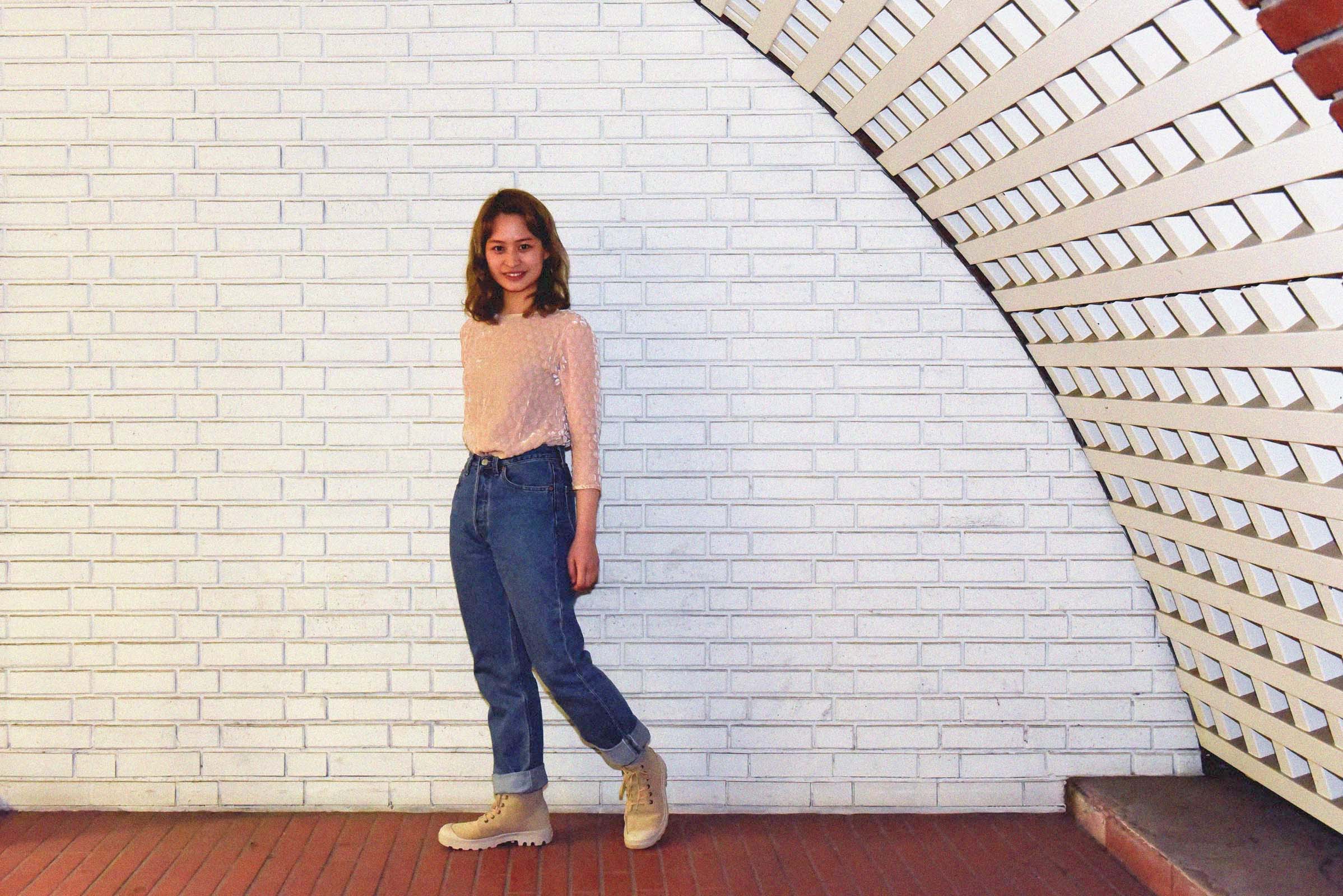 普段はラフなスタイルが多いですね。色は、好きな音楽、楽しいものを選ぶような感覚で選んだりします。今日は、黒だとなんでも合わせやすいです。PAMPA Hi ORIGINALEはキャンバスだけど、しっかりとブーツの形をしているので、黒のブーツにラフなスタイルを選ぶと、ちょっと男の子っぽくなりすぎちゃうかなぁ。と思ったので、「じゃあ、今日はブラウス!」 そんな感じで合わせてみました。