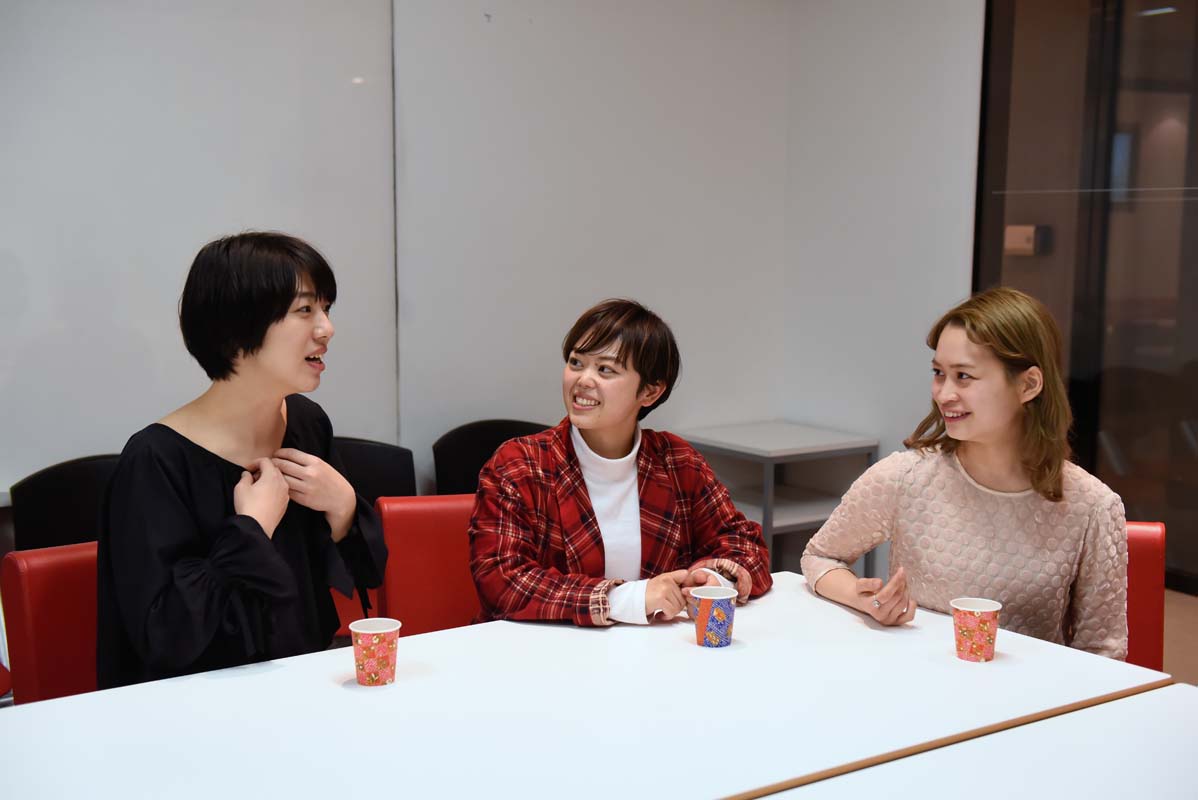 「売れるためにバンドをしたい。音楽を発表していきたいという意識はなかったんです。ステージに立ち始めた頃は、『なんで今、ステージに立っているのかな?』みたいな感覚でした」と和久利が笑うと、渡辺は、「普段は前に出るのは好きな方なんですけど、音楽は前のめりで、聴いてもらいたい! という感じではないんです。とにかく、3人ではじめたものが面白くて、今もこの3人で音を鳴らしているのが楽しい。そういう気持ちが強いですね」と話す。