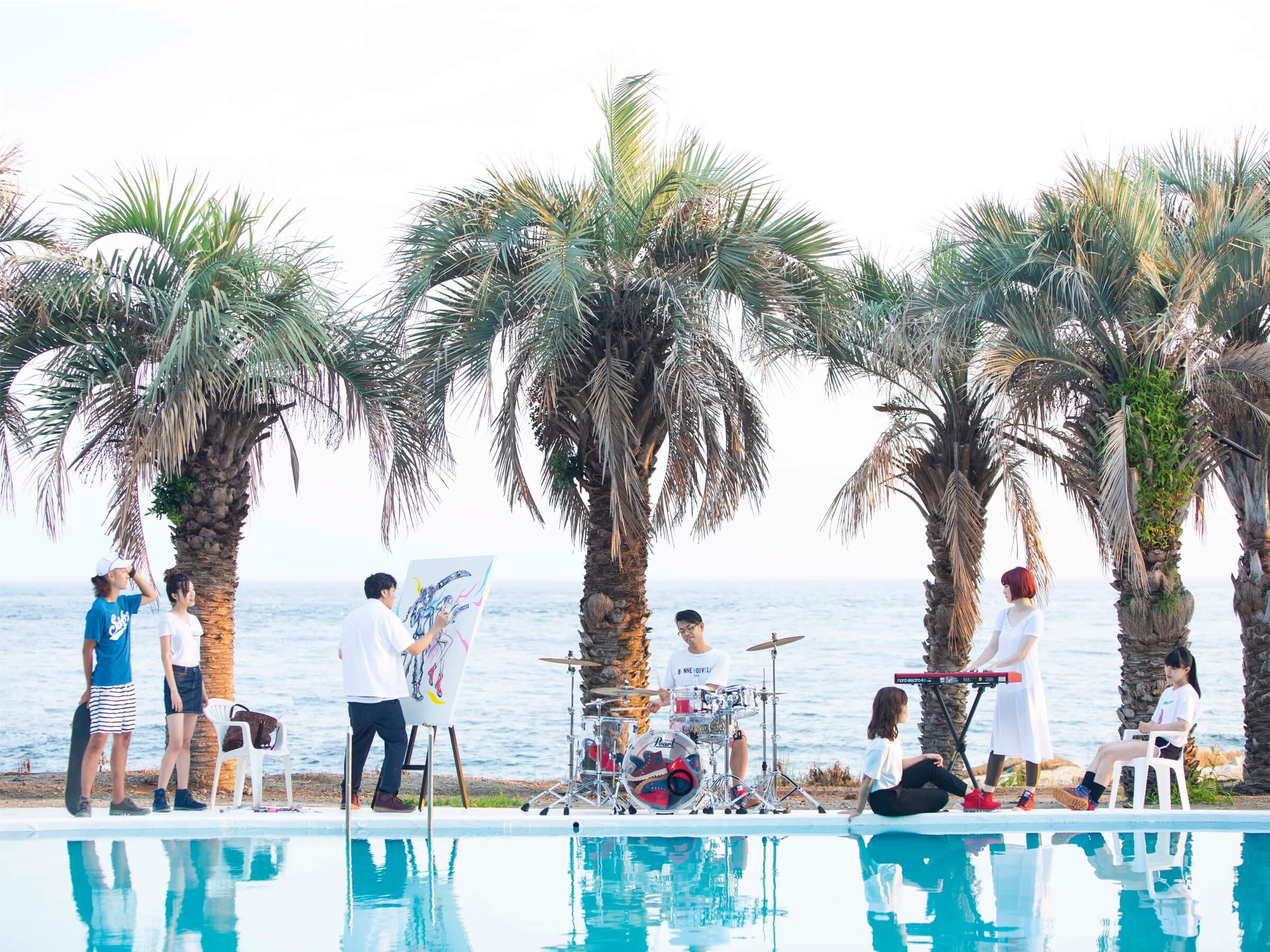 今回は、ドラマーのYOHEIさん、画家の天野弓彦さん、キーボーディストのにしのえみさんたちと、盛夏の白浜フラワーパークで、それぞれの楽しみ方、表現をキーワードにPALLADIUM MAGAZINEでフォトシューティング。