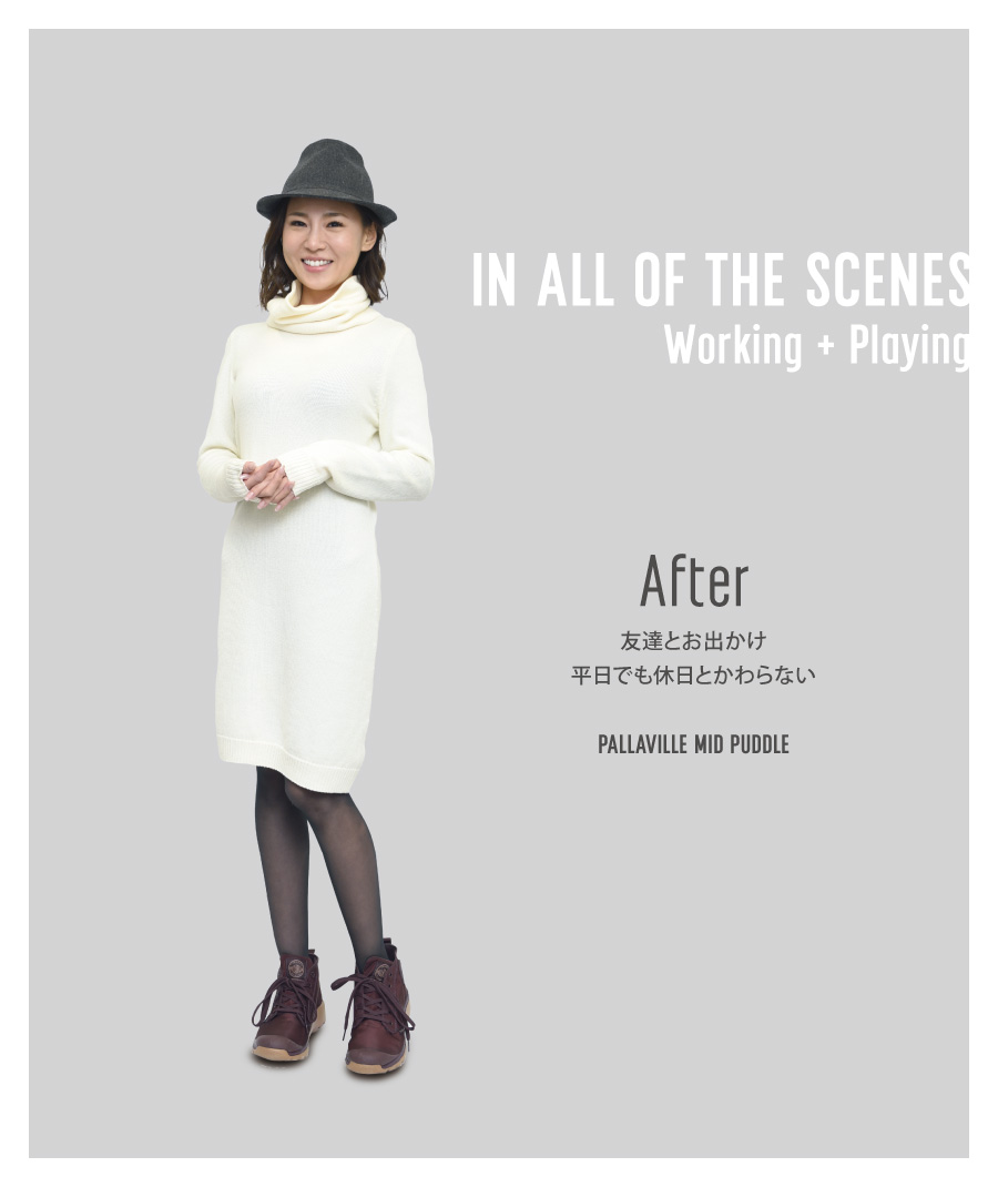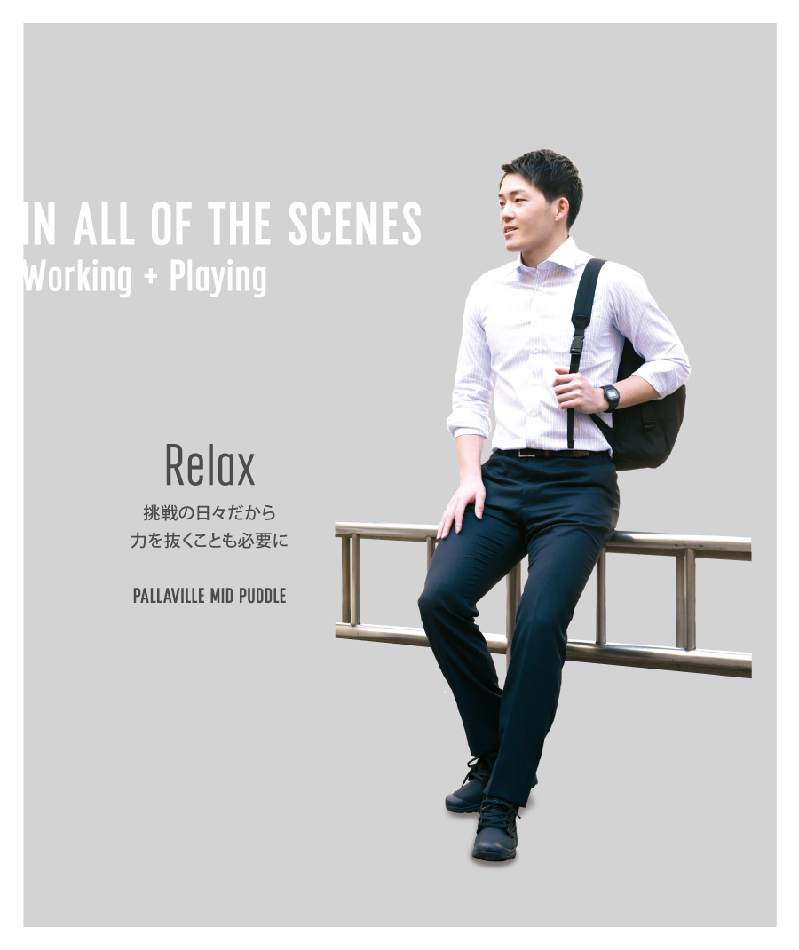 ヨーロッパを中心に、国内フェスティバルシーンでも人気を集め、レインシューズとしても知られるPUDDLE LITEから、今春、ミッドカットのPALLAVILLE MID PUDDLEが登場。ベーシックからオフィスカジュアルまで、スタイルやシーンを選ばず、生活へと溶け込む。仕事も遊びも、歩くことから。