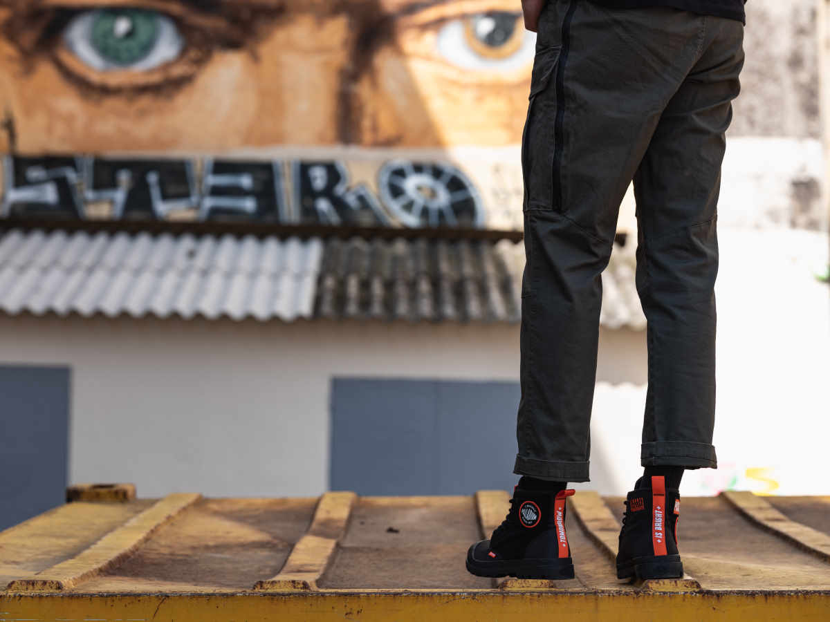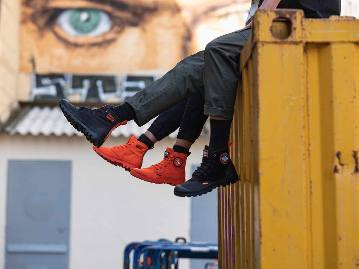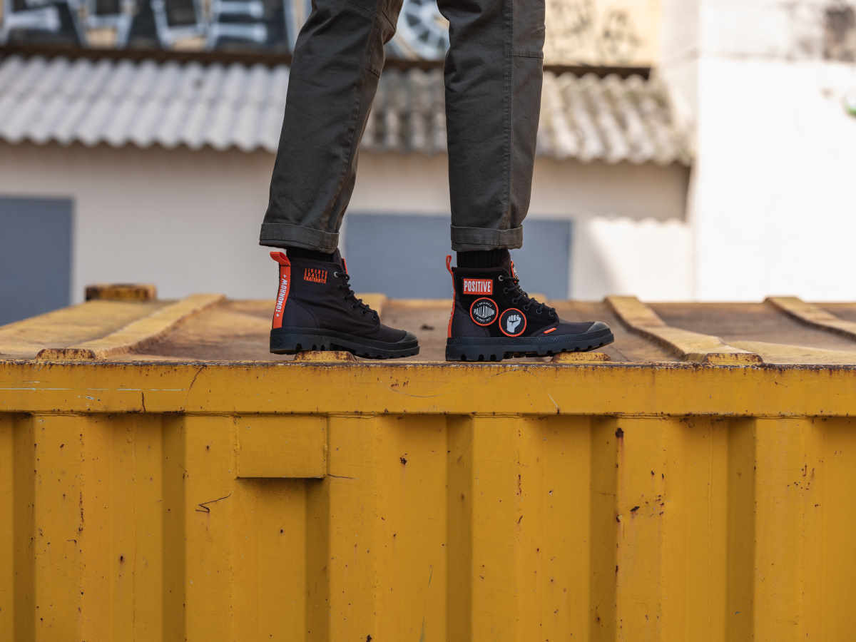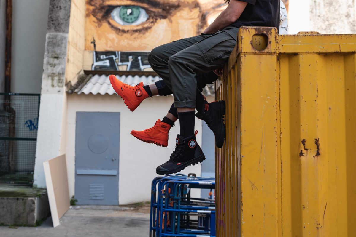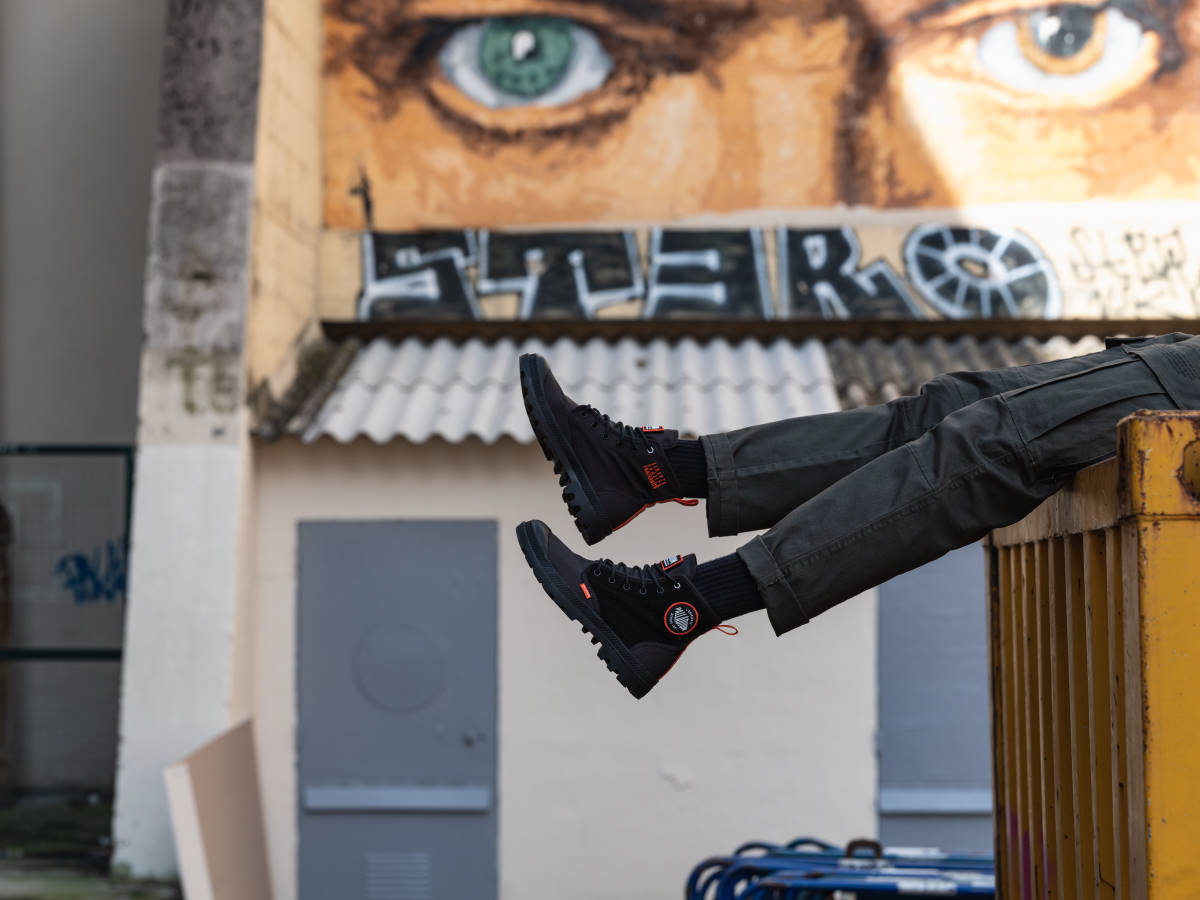 パラディウムは、フランスの変革を求める精神や、絶えず変化する社会に共感している。街に飛び出し、今ある状況に対し、より良い変化、変革を起こす為に挑戦し続ける人々をサポートします。PAMPA HI CHANGEは、そんなポジティブな思いを持ち、変革へと立ち上がる人々をサポートするブーツ。