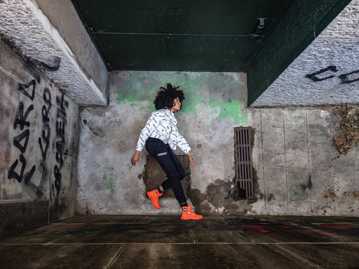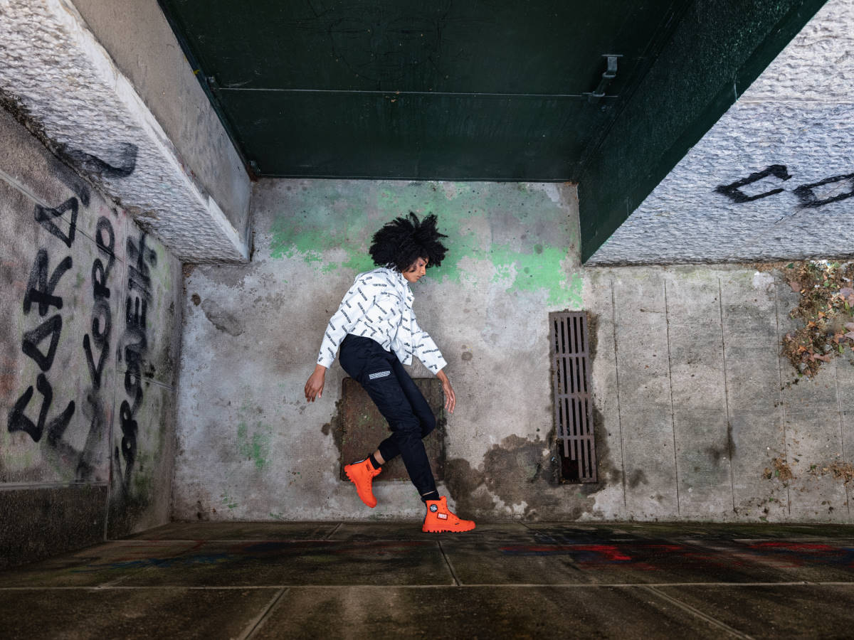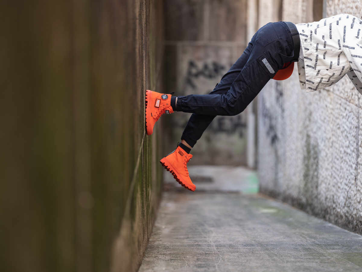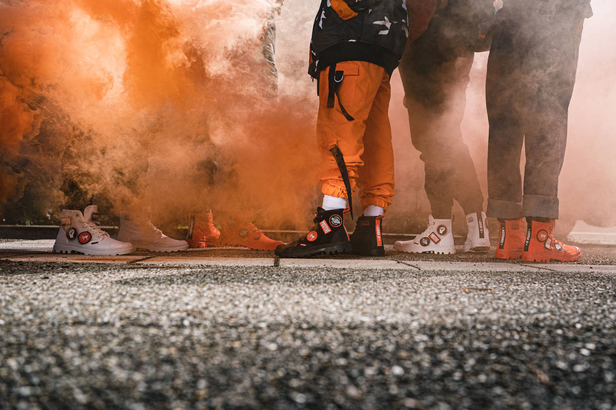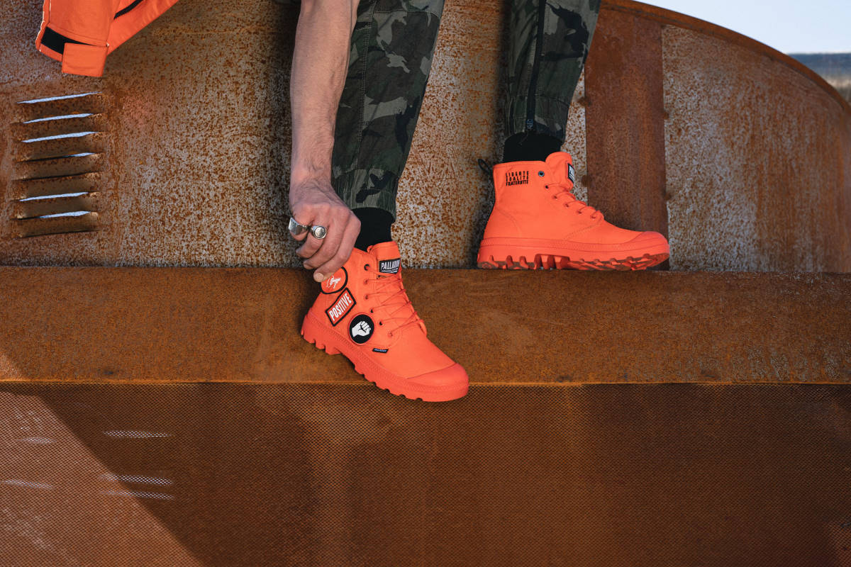 パラディウムは、フランスの変革を求める精神や、絶えず変化する社会に共感している。街に飛び出し、今ある状況に対し、より良い変化、変革を起こす為に挑戦し続ける人々をサポートします。PAMPA HI CHANGEは、そんなポジティブな思いを持ち、変革へと立ち上がる人々をサポートするブーツ。
