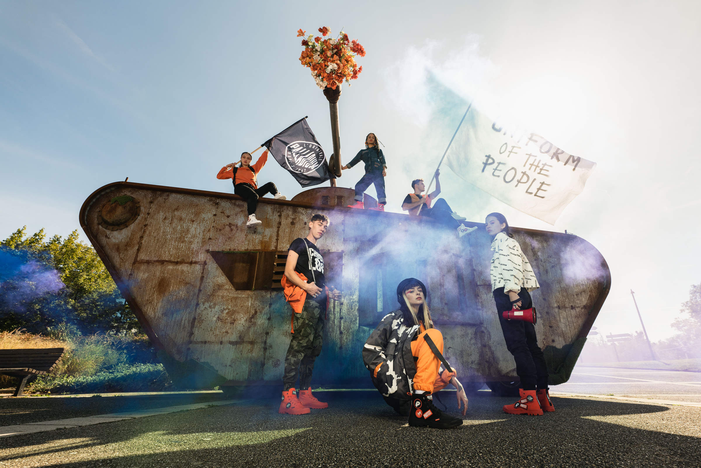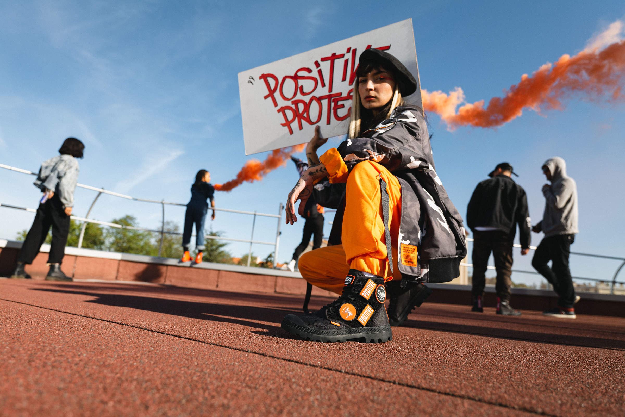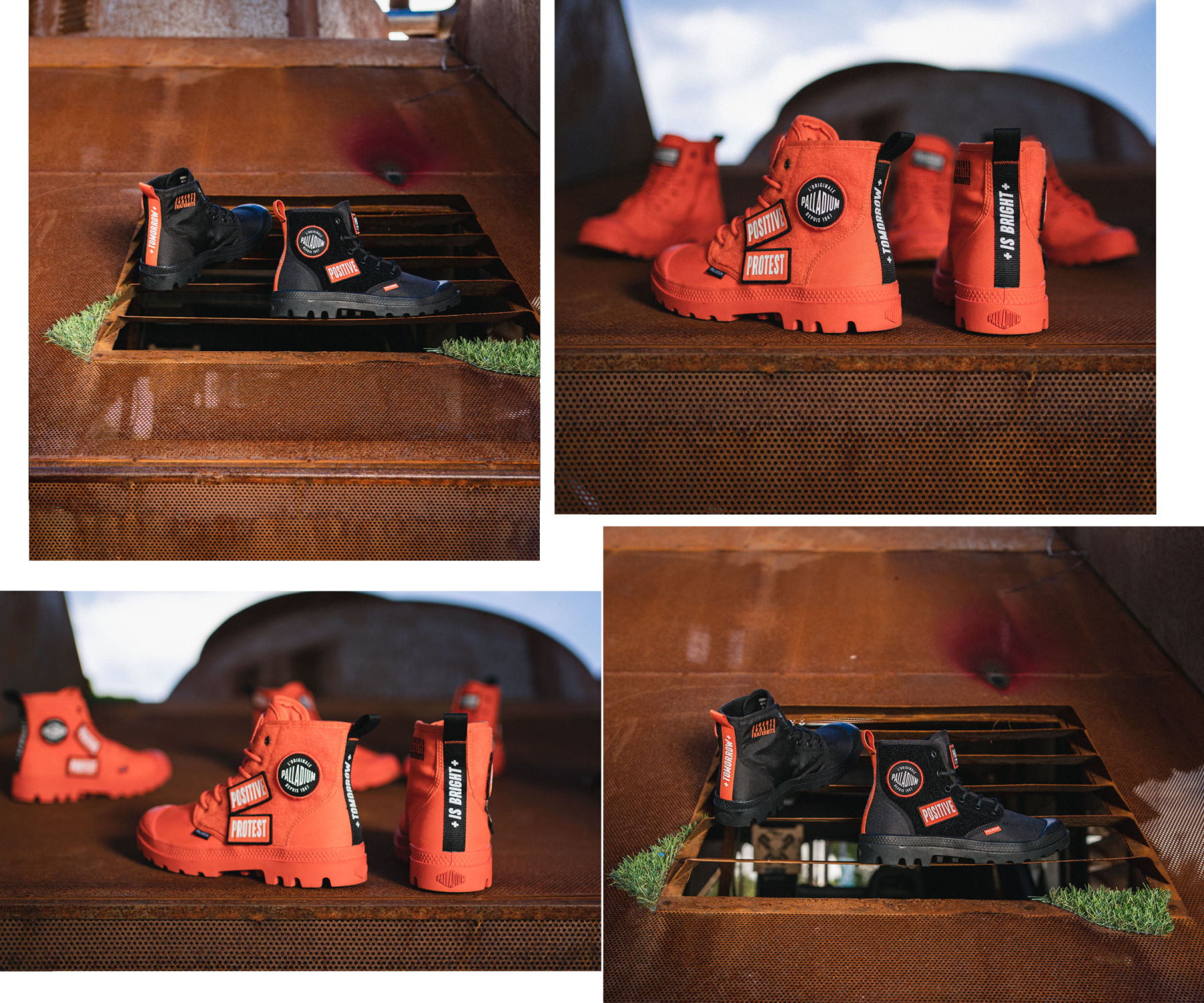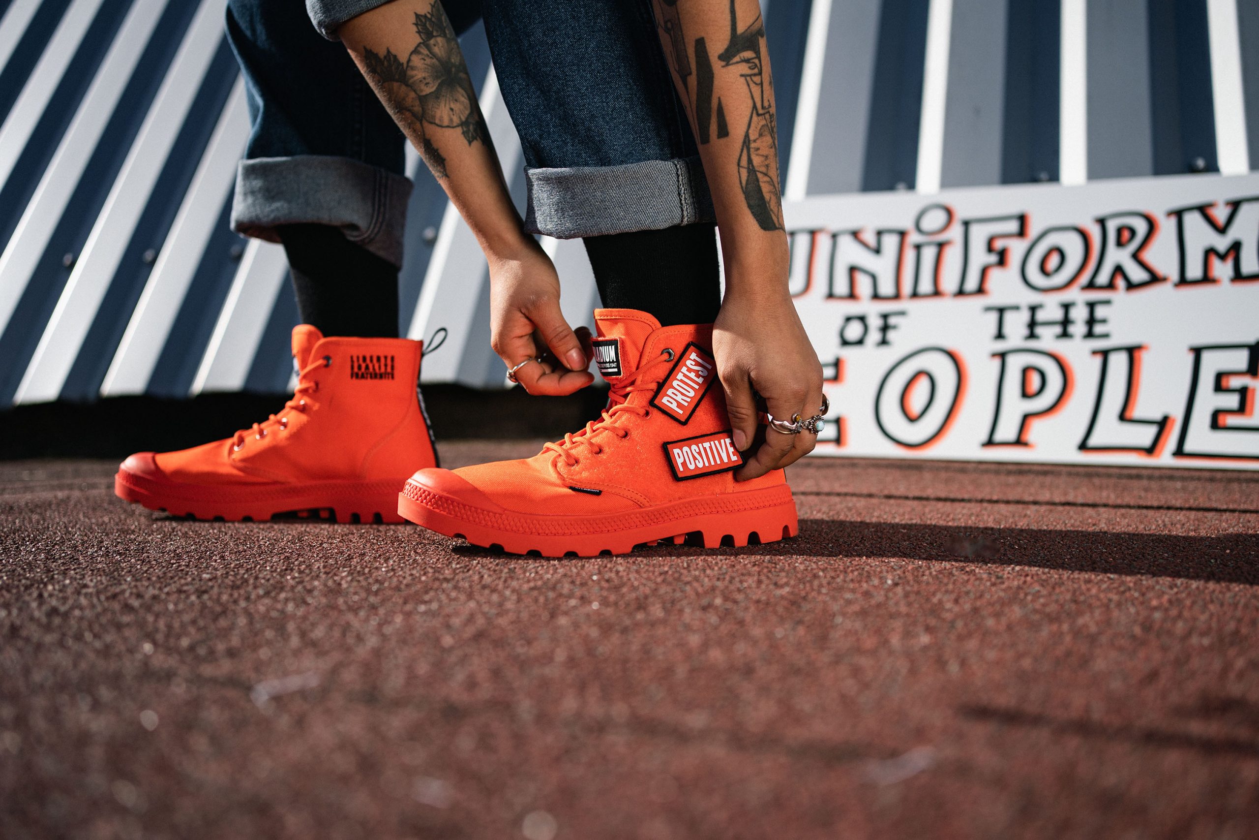 パラディウムは、フランスの変革を求める精神や、絶えず変化する社会に共感している。街に飛び出し、今ある状況に対し、より良い変化、変革を起こす為に挑戦し続ける人々をサポートします。PAMPA HI CHANGEは、そんなポジティブな思いを持ち、変革へと立ち上がる人々をサポートするブーツ。