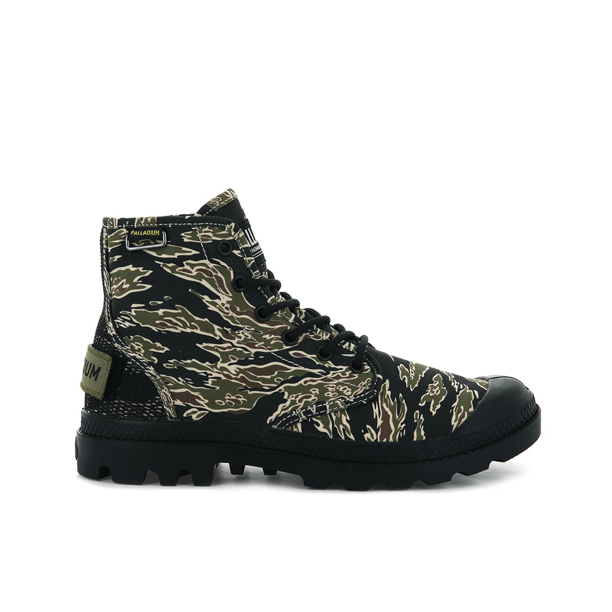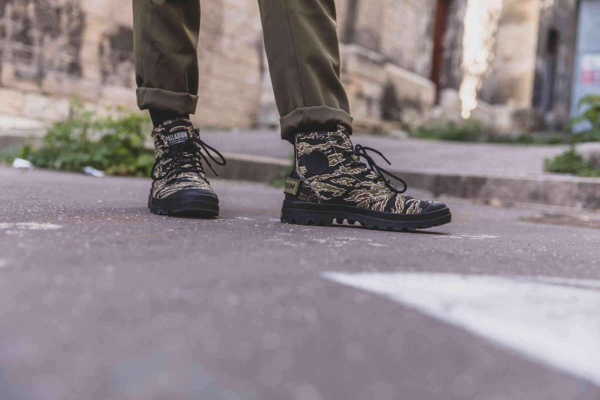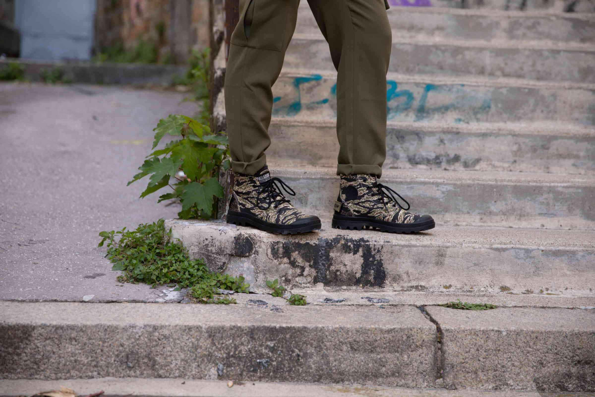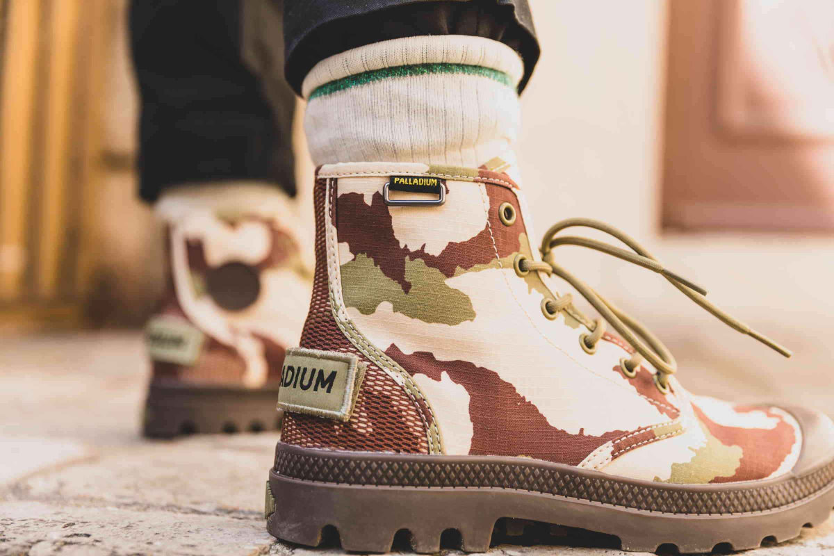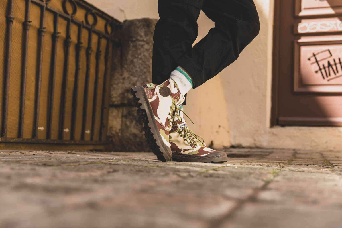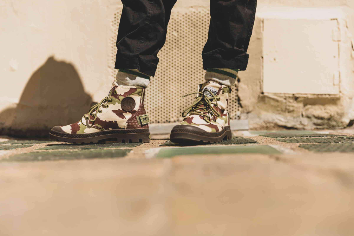 この春夏シーズンは、パラディウムのヘリテージであるPAMPA(パンパ)シリーズを全面的に押し出し、日本でも商品名にパンパを冠したモデルだけで16品番57モデルにものぼります。PAMPA HI OG CAMO(パンパハイ オリジナーレ カモ)は、アッパーにカモ柄を採用したミリタリーテイストあふれるキャンバスブーツ。