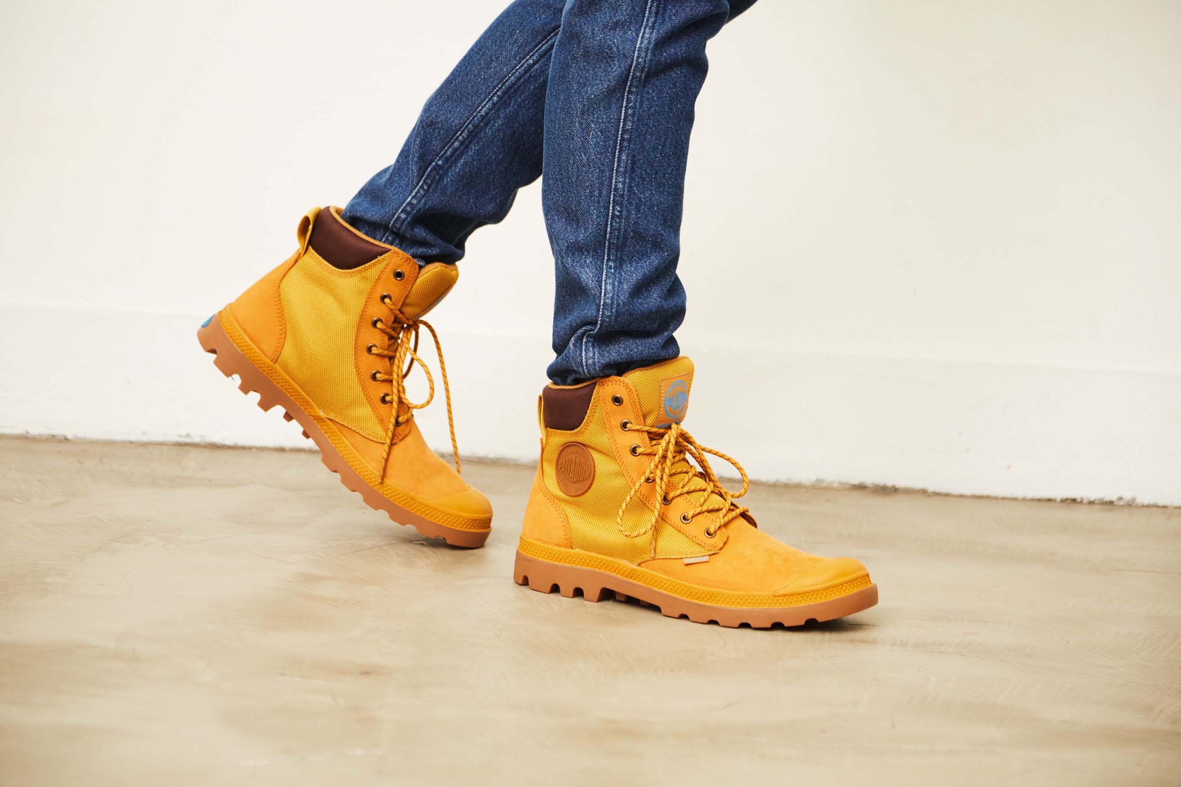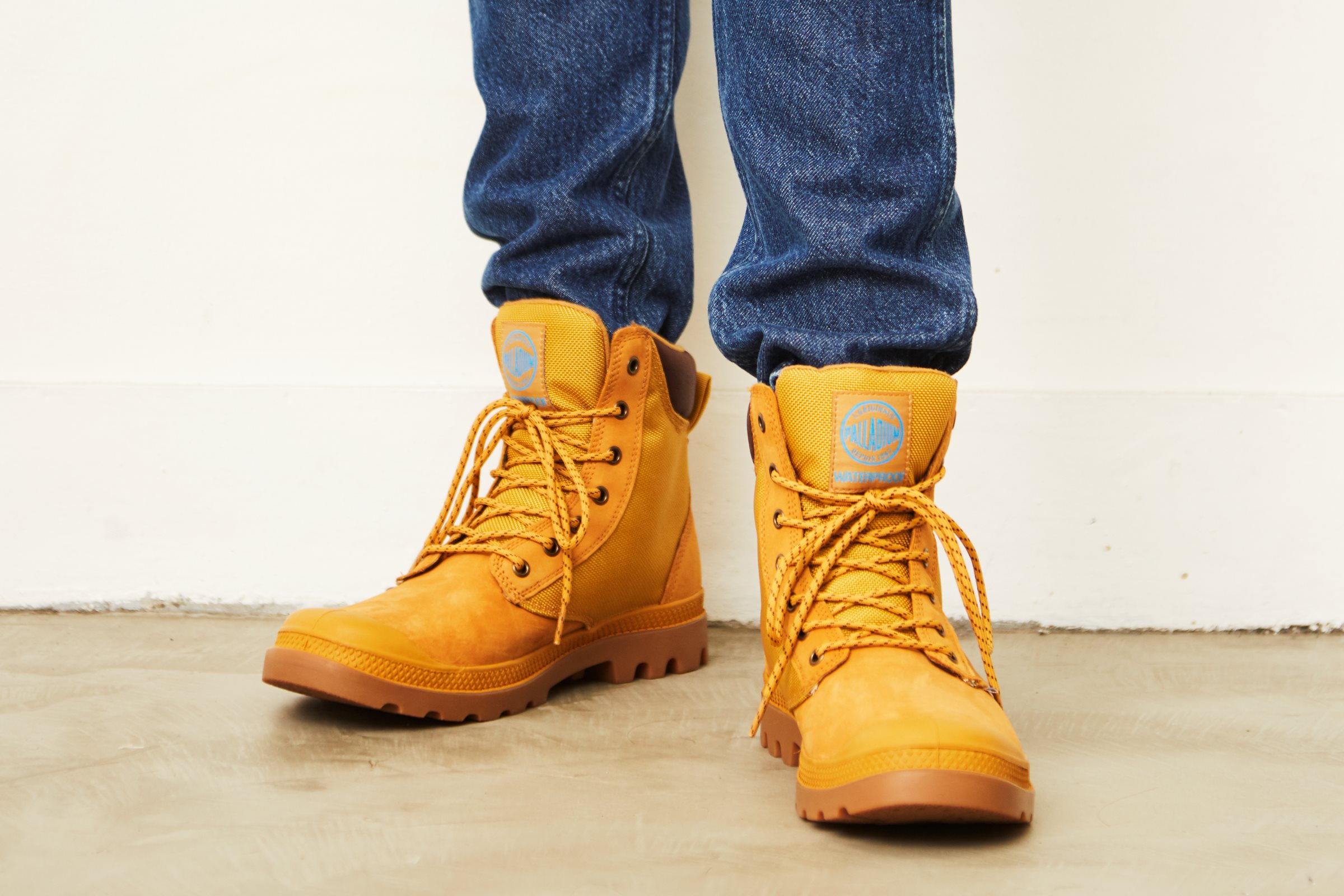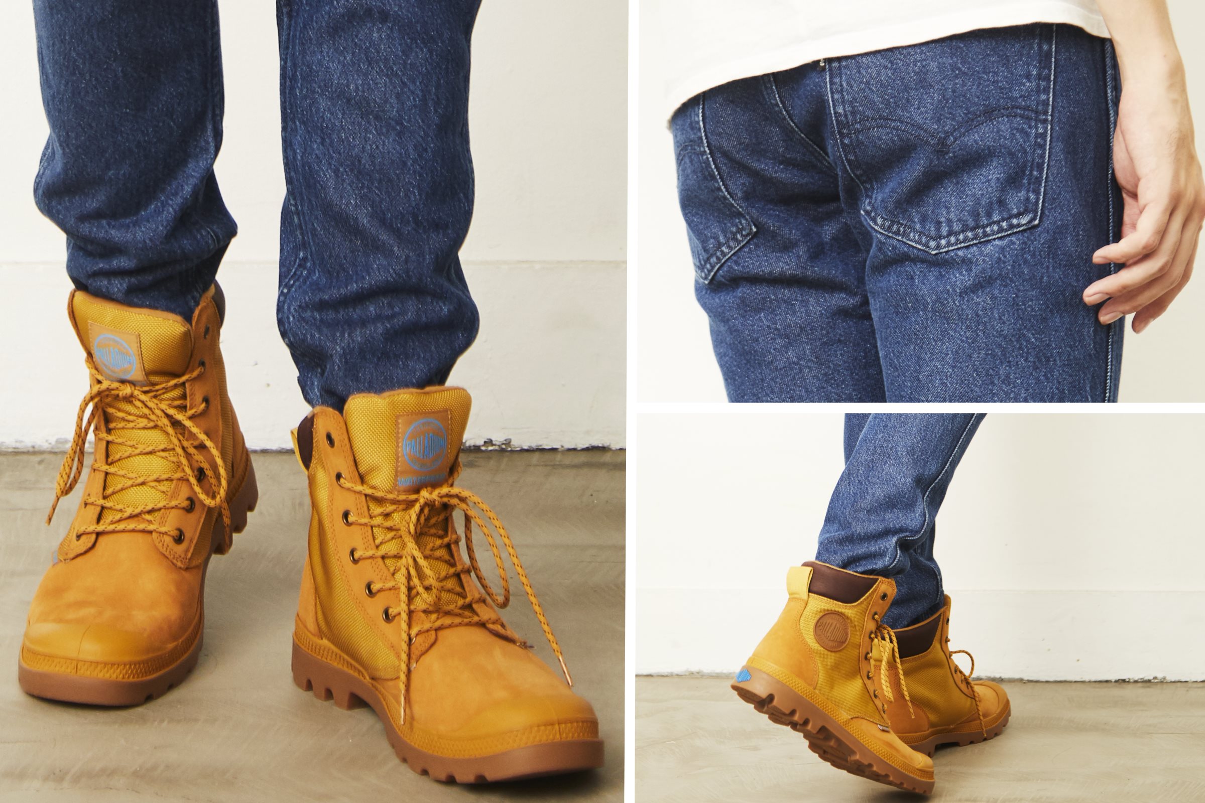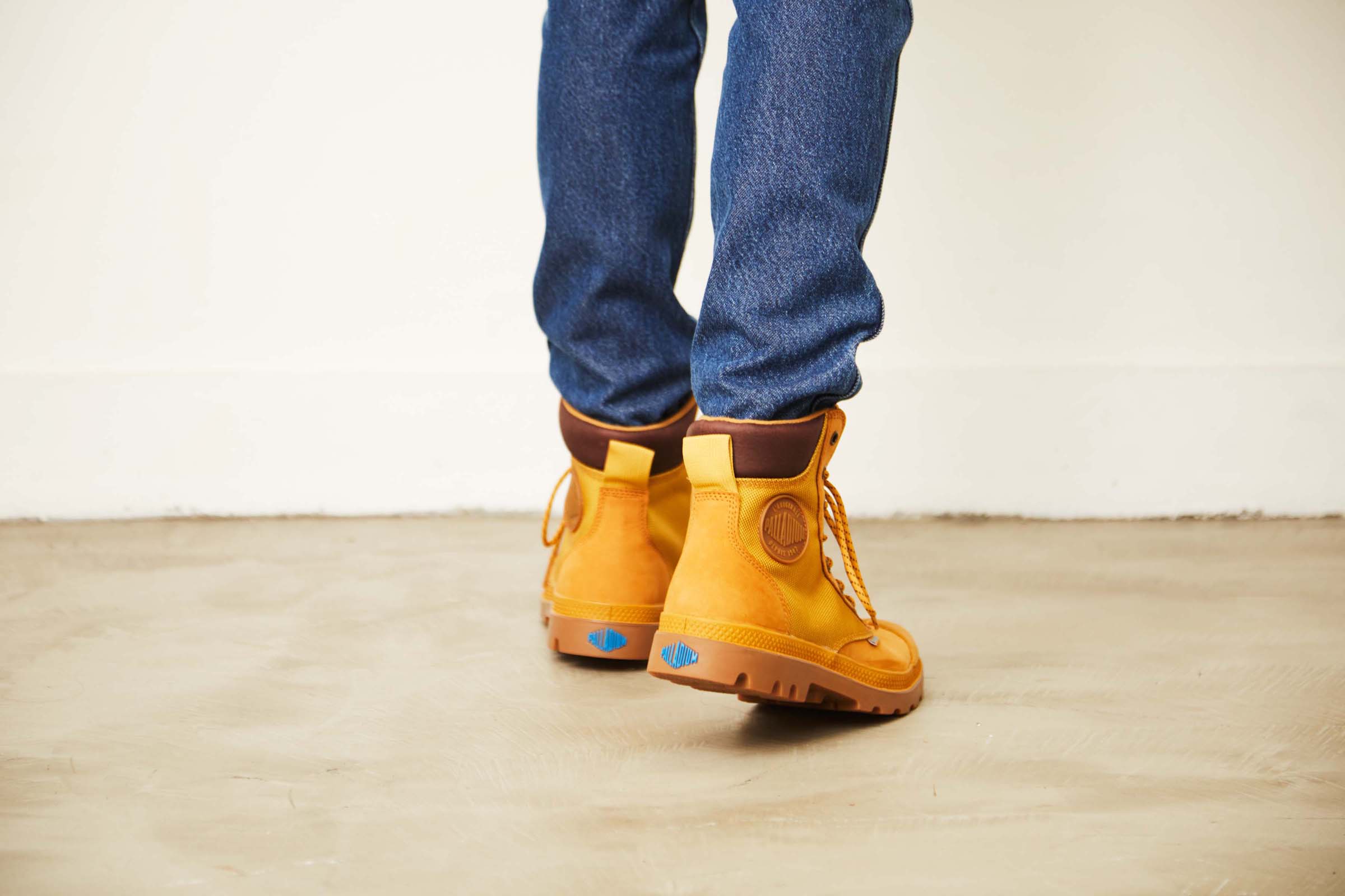 防水レザーと非吸水処理をした高強度のメッシュ素材をコンビしたPAMPA SPORT CUFF WPN(パンパ スポーツカフ ウォータープルーフ ナイロン)は、パラディウムを代表する防水シューズPAMPA PUDDLE LITE WP(パンパ パドルライト ウォータープルーフ)と異なり、よりハードでミリタリーテイストに溢れるブーツ。