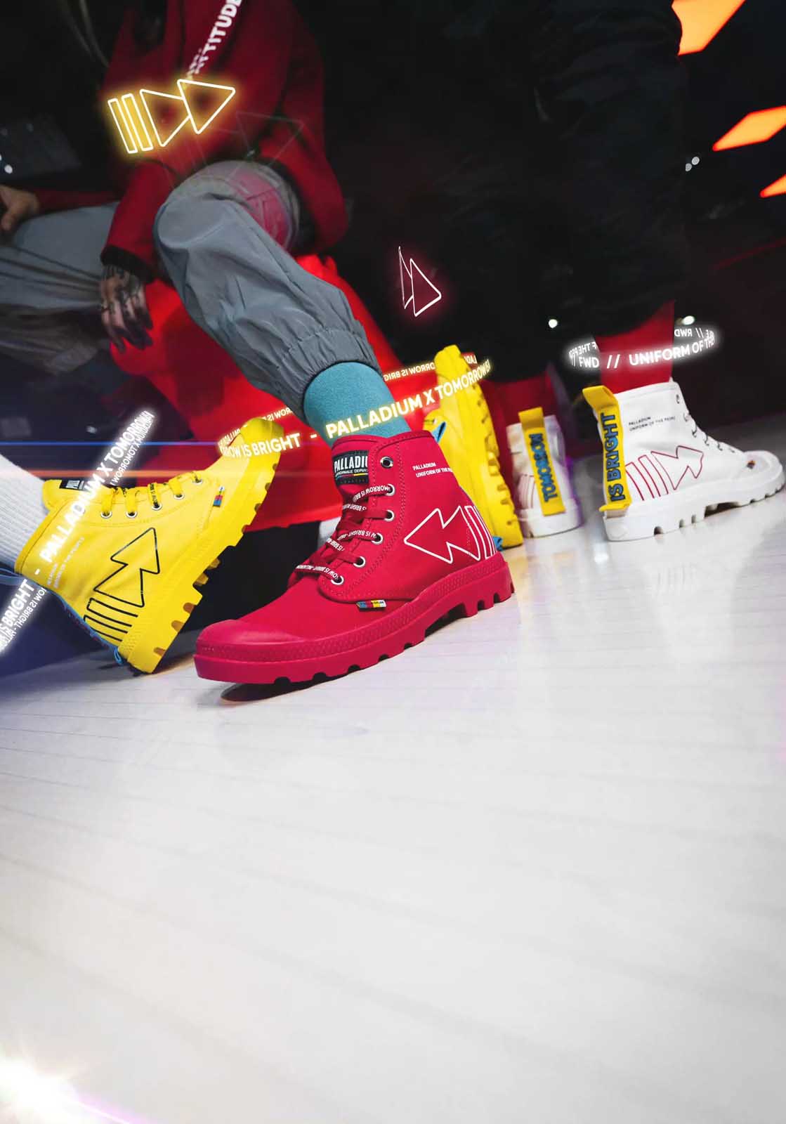 今シーズン、パラディウムは、若者とその未来に向けてオプティミズムの意識と遊び心を届けます。未来を意識したスタイリング、スローガンを伴ったデティールそしてファッション感度の高いシルエットを製品の中で融合し、パラディウムが今伝えたいメッセージを表現したコレクションを発表。日本では、パラディウムのオフィシャルストアS-Rush(エスラッシュ)5店舗とECストア限定で発売します。