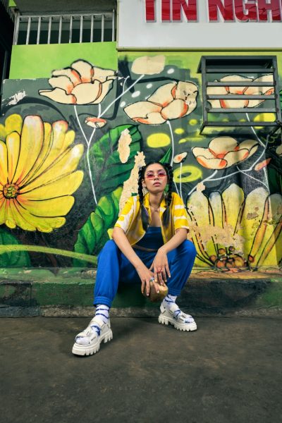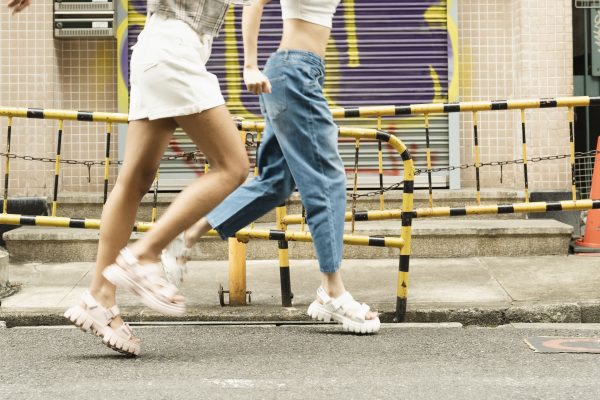 パンツにもスカートにも合わせやすい一足で、夏らしいカラフルなコーデにマッチします。
