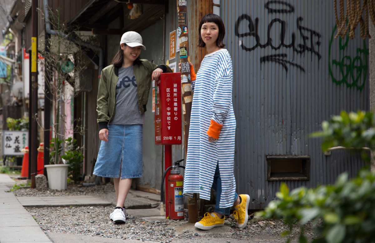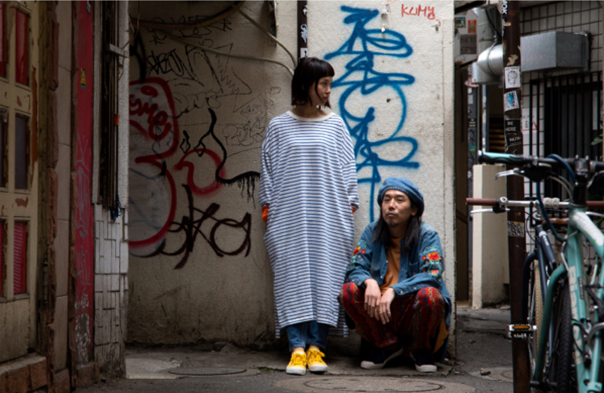 ALDIES デザイナーAQZAWAさんと、<RAINBOW DISCO CLUB>主催者であるMasahiro Tsuchiyaさんらとともに、3アイテムを携え、東京・三軒茶屋でコーディネート撮影を行いました。