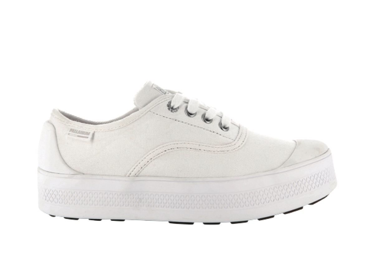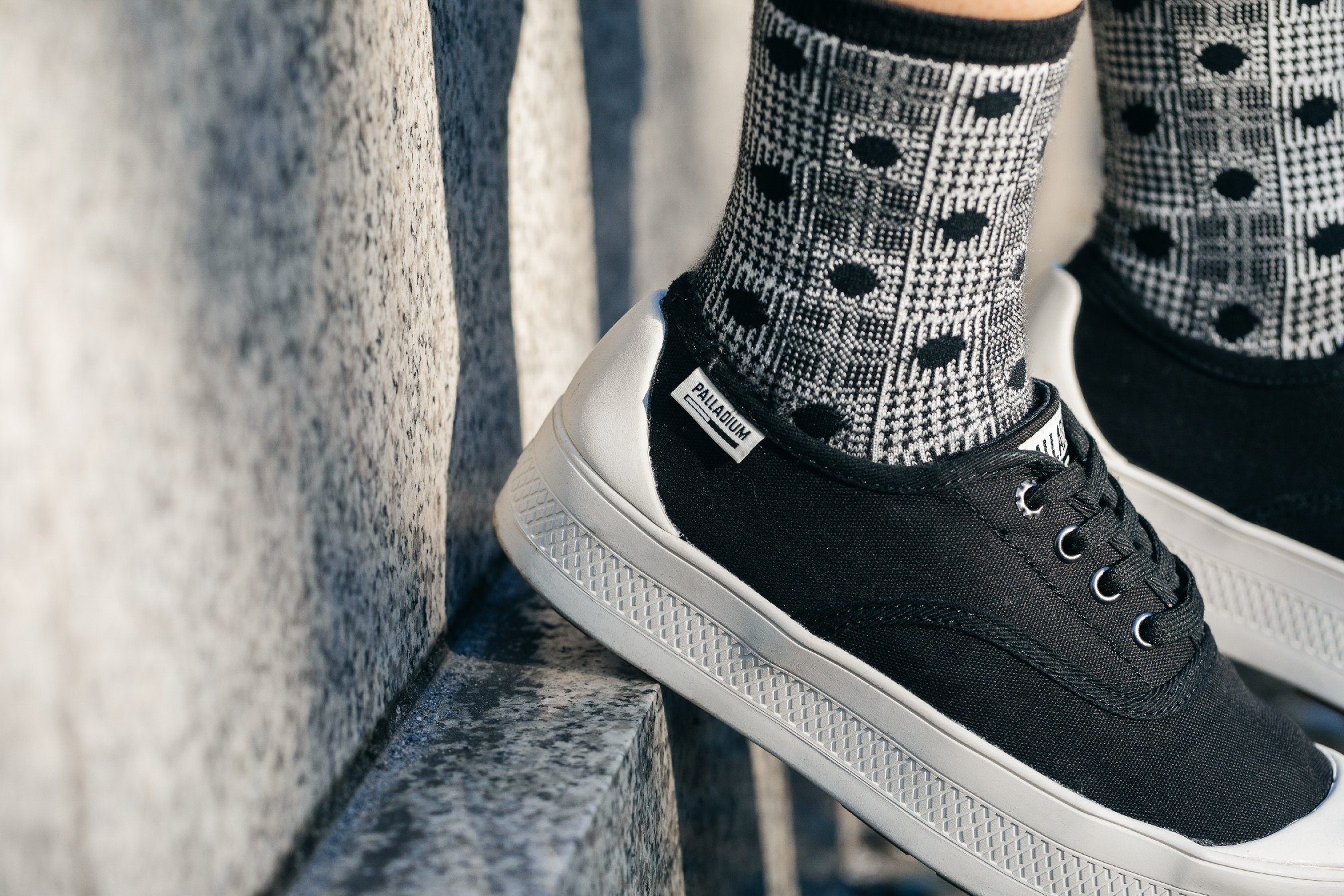 パラディウムのアイコンであるトゥーキャップ付アーカイブと、モダンなヒールキャップを組み合わせた厚底ソールのキャンバススニーカー「S_U_B LOW CVS」は、ミリタリートレーニングシューズからイン スパイヤーされたモデル。ヴィンテージデザインとモダンなバンパーソールを組み合わせた女性用スニーカーは、パラディウムDNAを夏らしく融合しています。