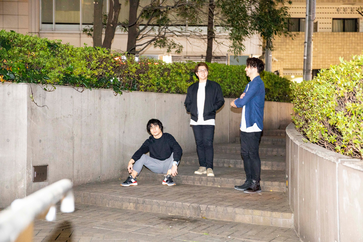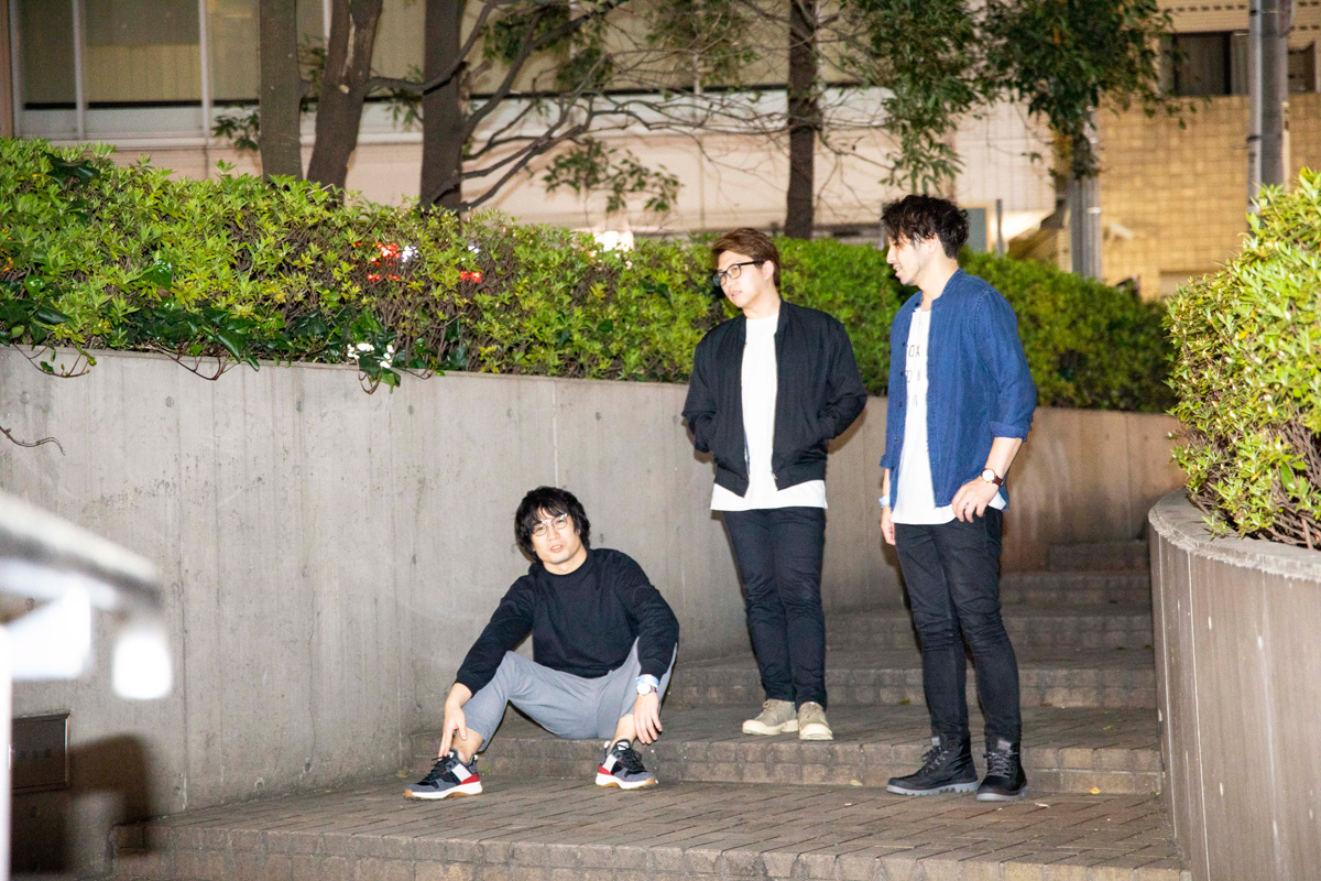 岸本「中学生ぐらいに音楽を好きになって、その頃から将来仕事にしたいと思っていたので、 音楽の聴き方も同世代の友人達とは違ったかも知れないです。ただ、仕事意識が強くなり過ぎると音楽の"楽"の部分が欠けそうなので、ストイックになり過ぎないよう楽しむことを心掛けています。そもそも音楽をやるために集まった、何となく挑戦するのが好きな3人なので、fcpに関しては自分達の発想とかを発信する場所ですね」