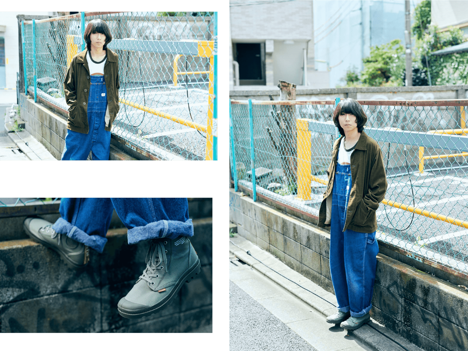 古俣『自分が好きなものを着ます。好きの基準が毎日違っていて、楽なのが好きな日があれば、きったねぇ感じが好きな日もある。その日ごとに選ぶ服が変わります。今日は部屋に入ったらオーバーオールが転がっていたので、着てきました! 真冬以外は大体サンダルを履いて歩いているので、興味がなさげに見られがちですが、意外と好きです。街を歩いていて思うのが、靴ってなんとなくその人を表してませんか?』