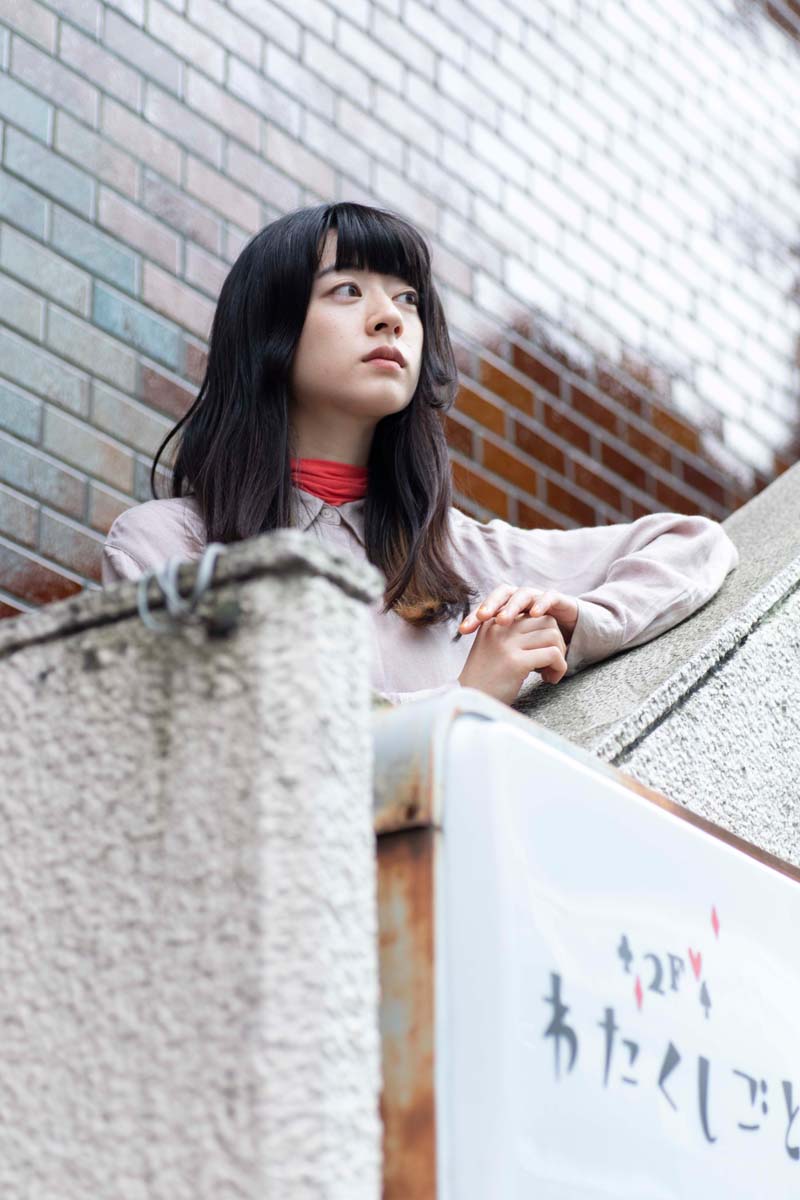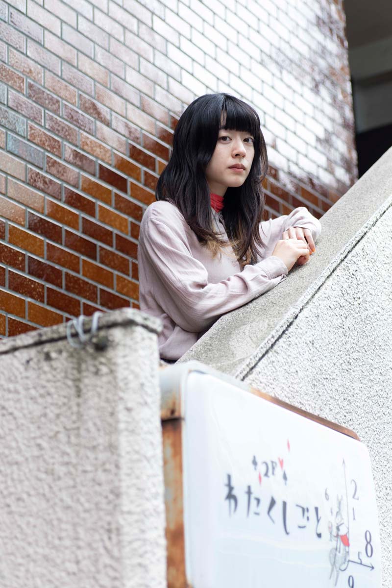 PALLADIUMと<下北沢にて'18>のコラボレーションポスター第一弾に登場した羊文学の塩塚モエカ(Vo.Gt)さん。