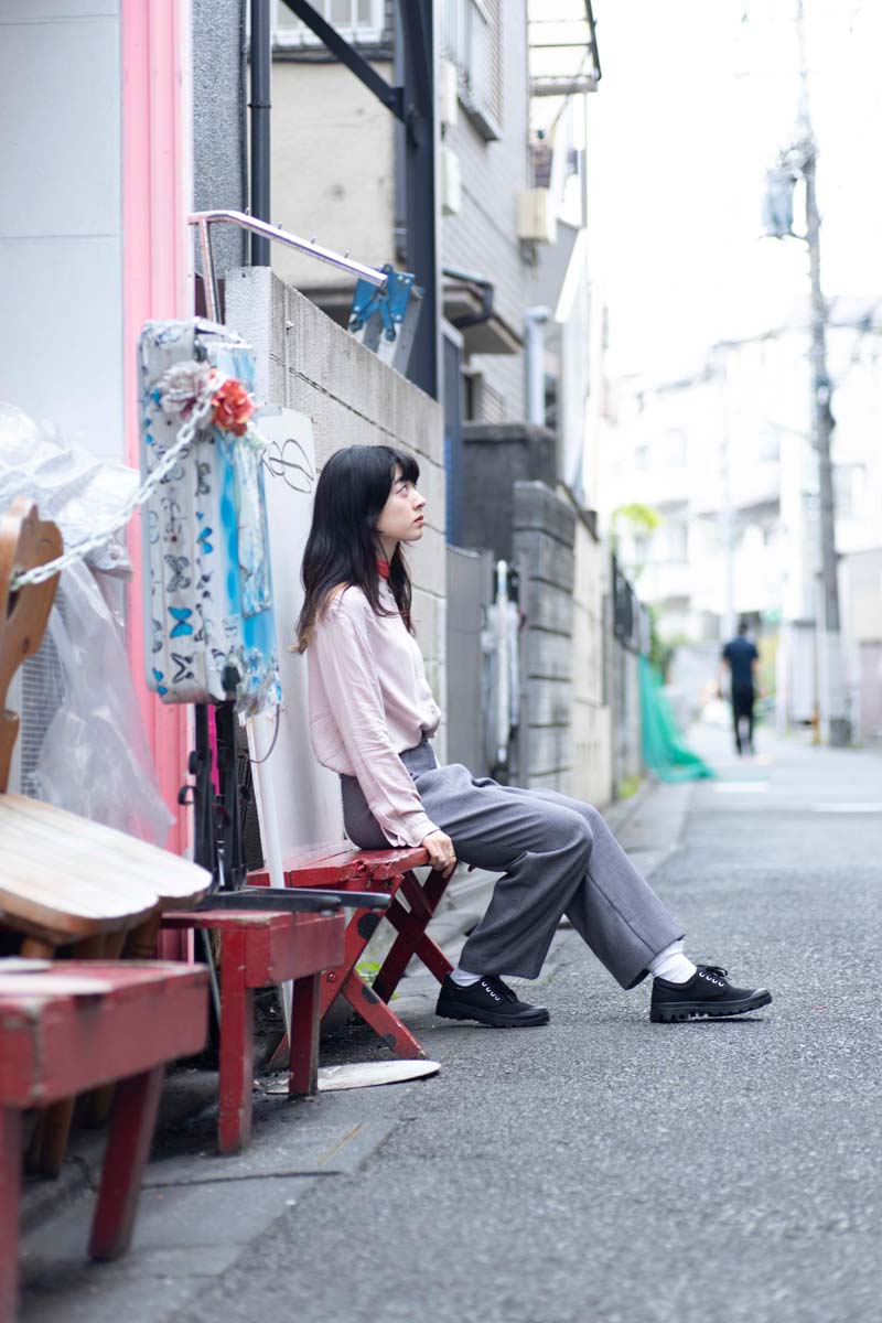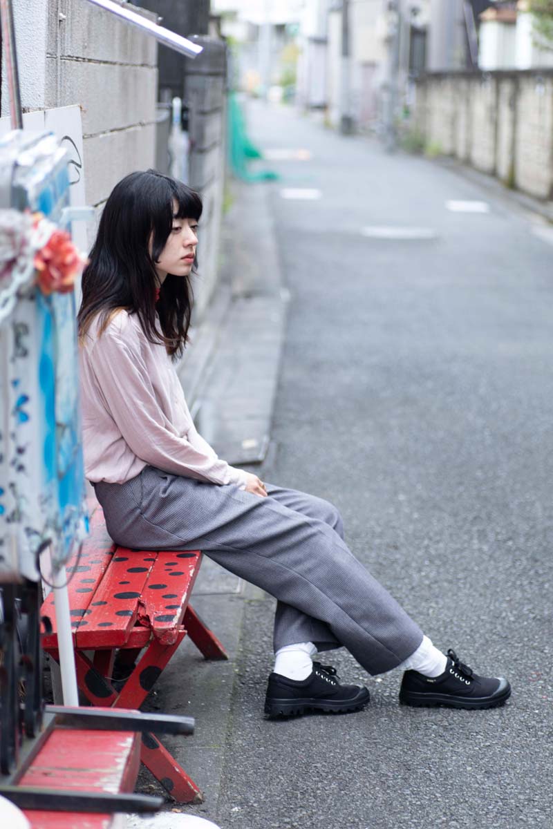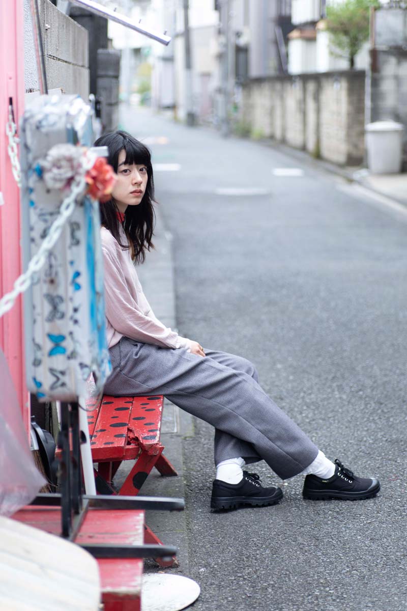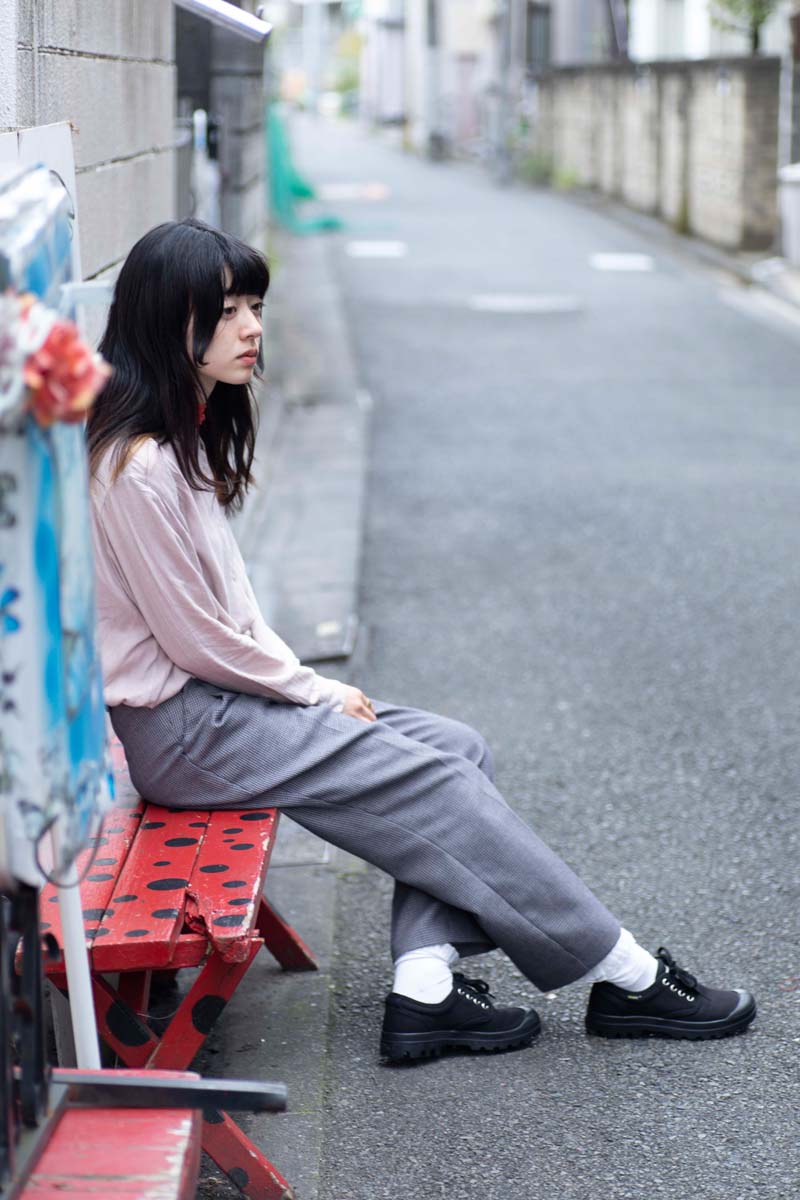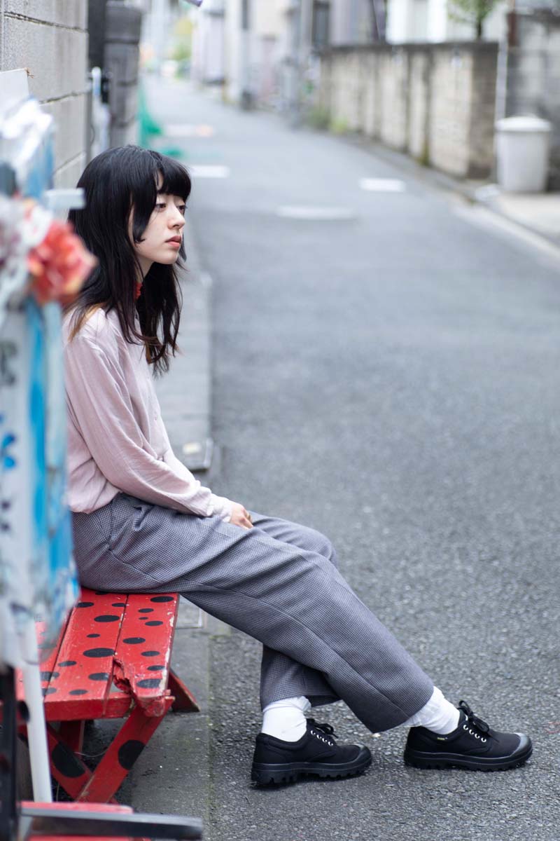 今回は塩塚モエカさんと開催会場となる下北沢の街をPALLADIUMのアイコンであるPAMPA OX ORIGINALE(パンパ オックスフォード オリジナーレ)と共に探索。フォトシューティングを敢行し、音楽やファッションとの関係についても話を聞いた。
