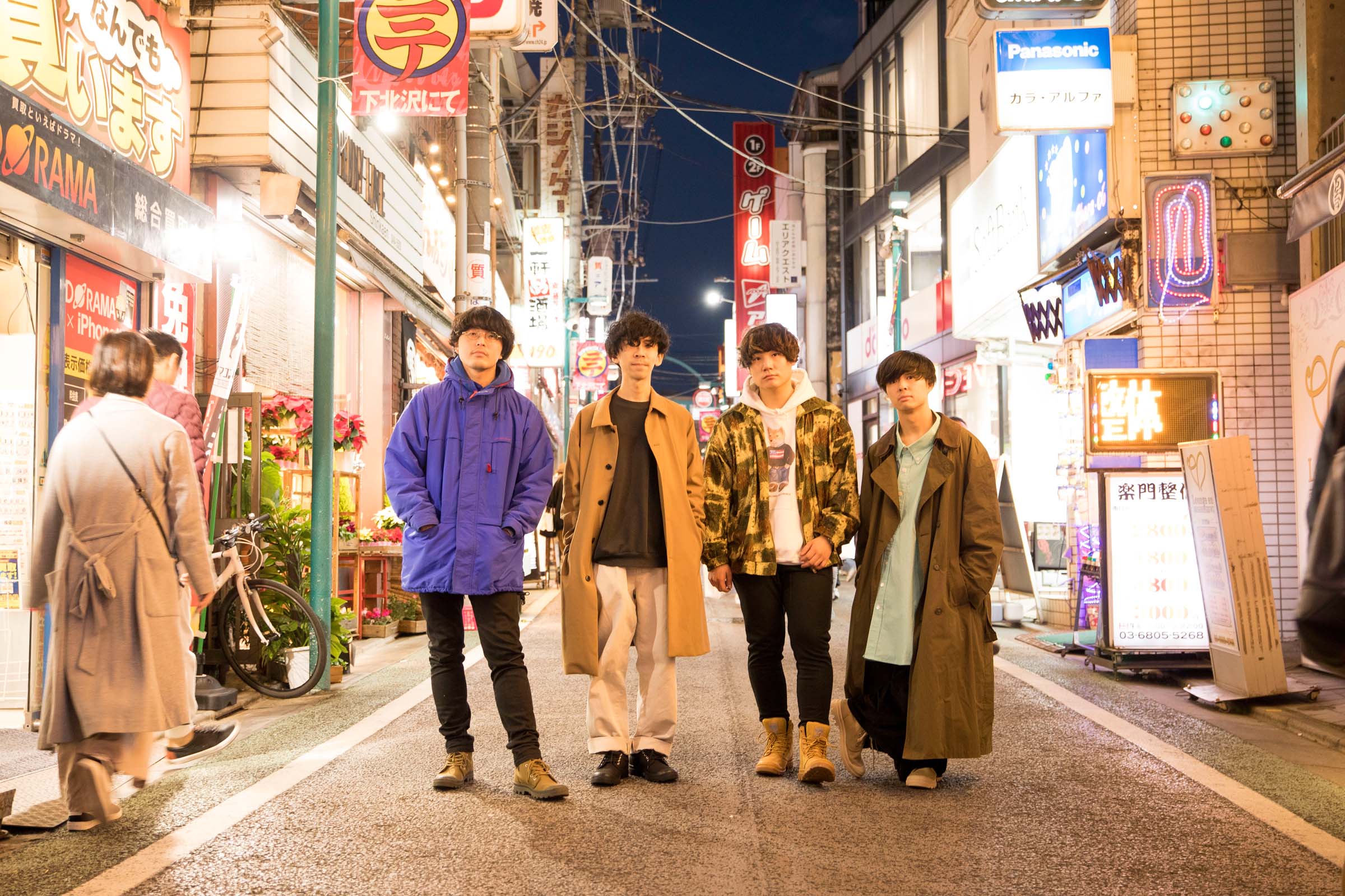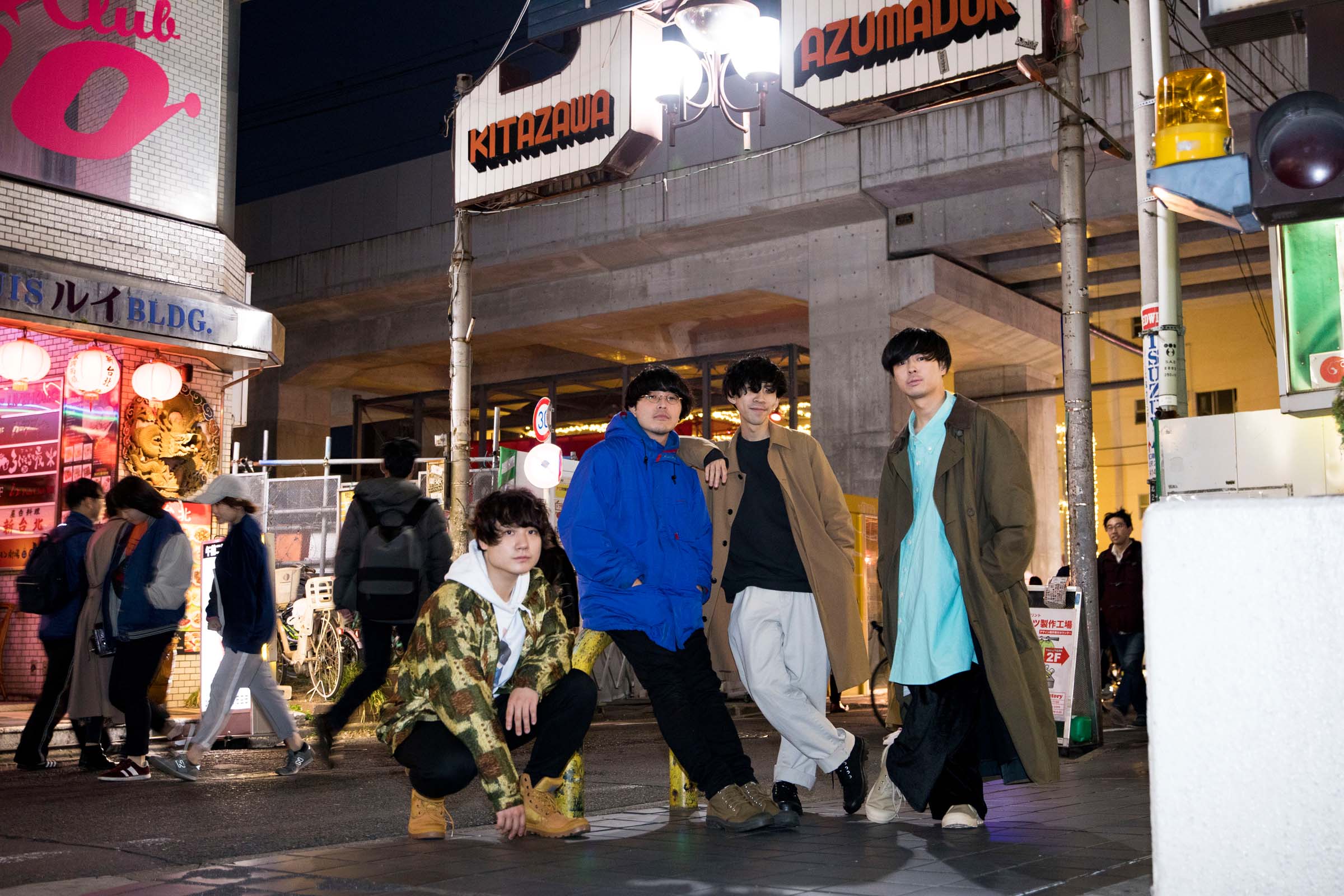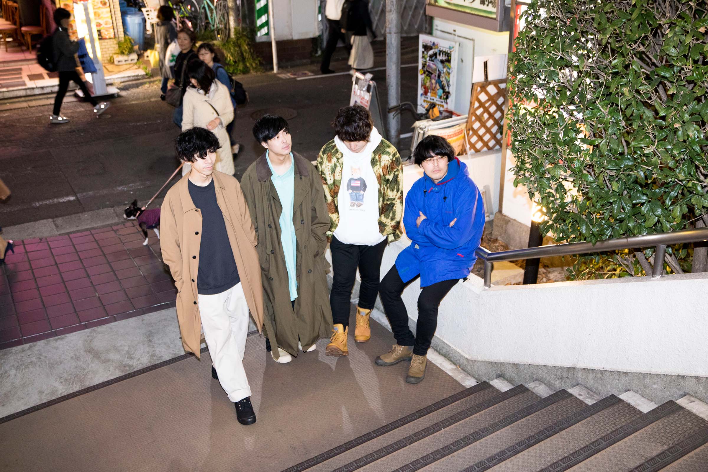 12月1日下北沢で開催された<下北沢にて’18>。ブランドとイベントのコンセプトのひとつである『 City Explorer × 音楽と恋する街』をテーマにさまざまなコラボ―レーションを行い、当日の出演アーティストたちとフォトシューティングを敢行。今回はCLUB251に出演後のThe Floorとともに開催当日に下北沢を探索。出演の感想や音楽とファッションとの関係について話を聞いた。