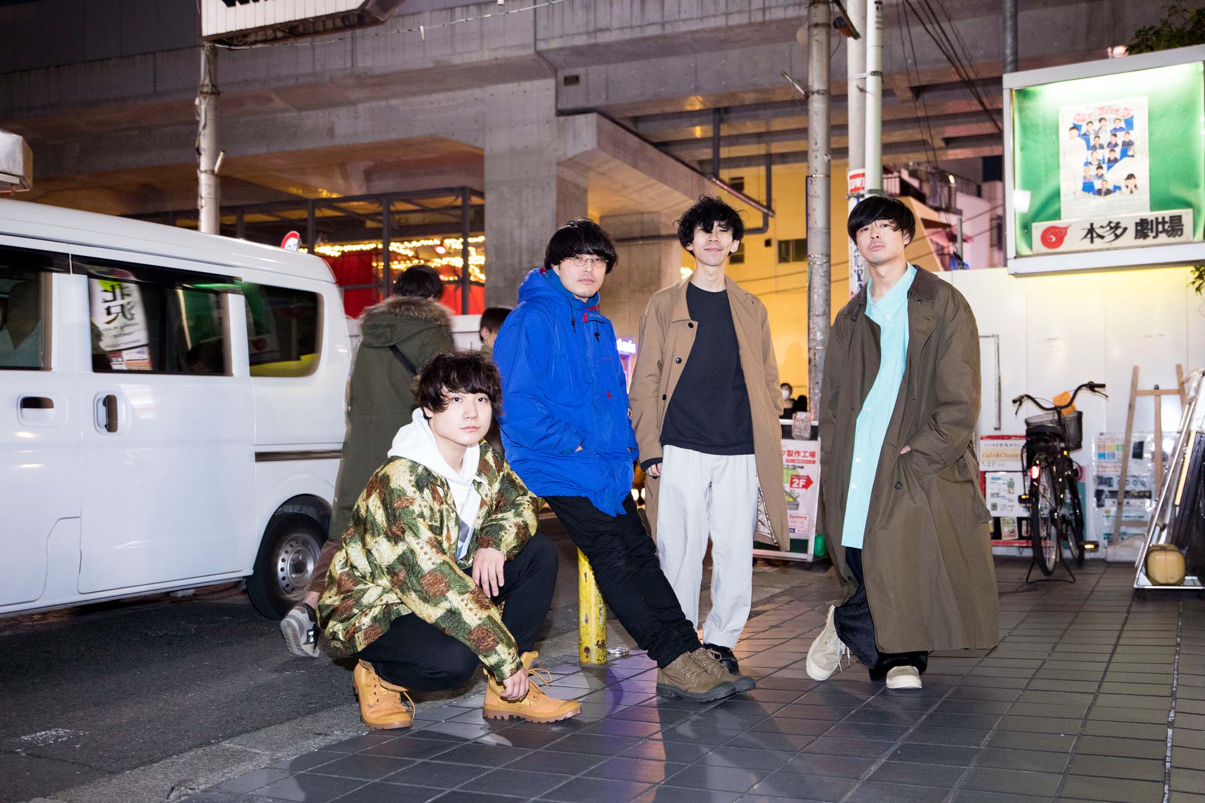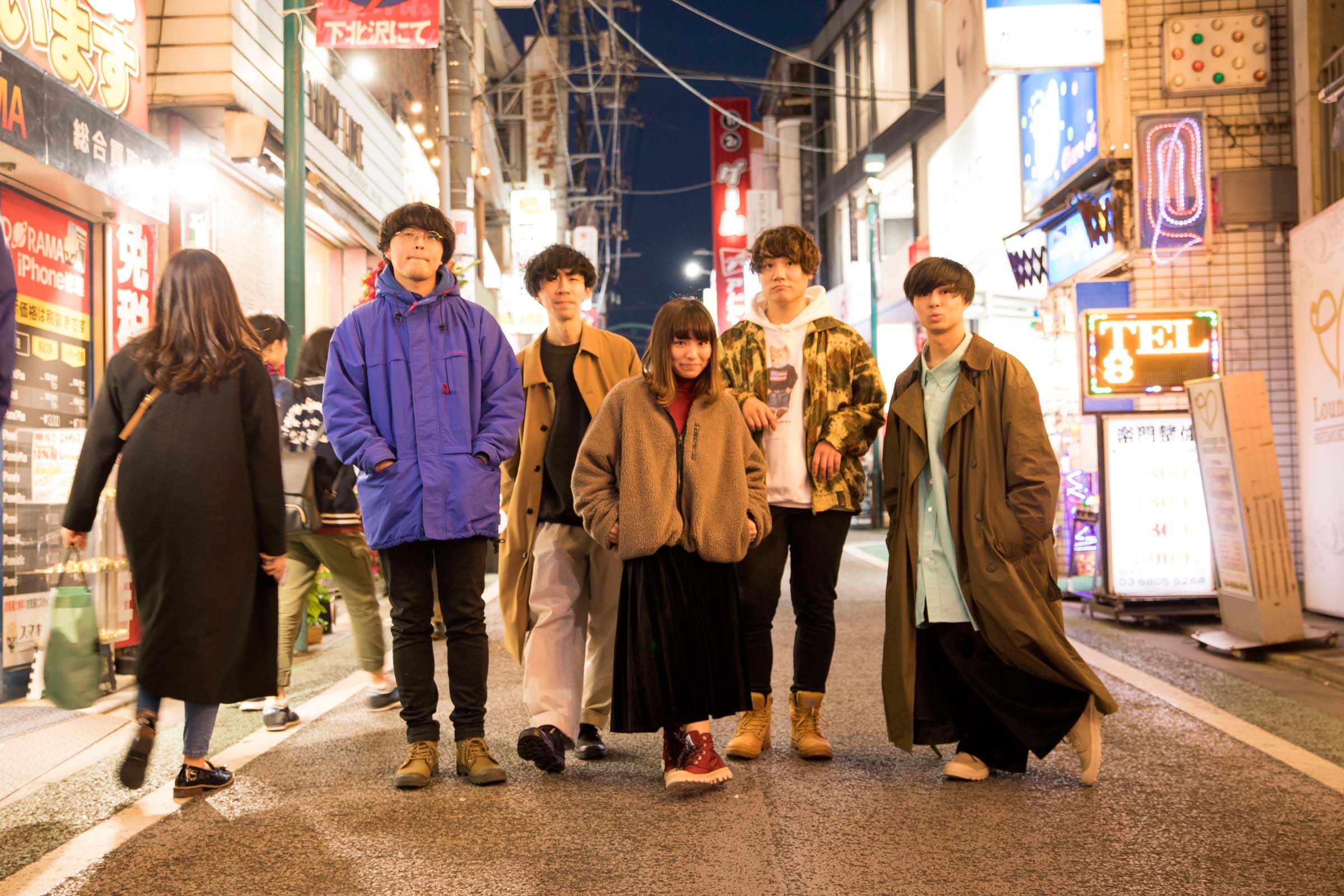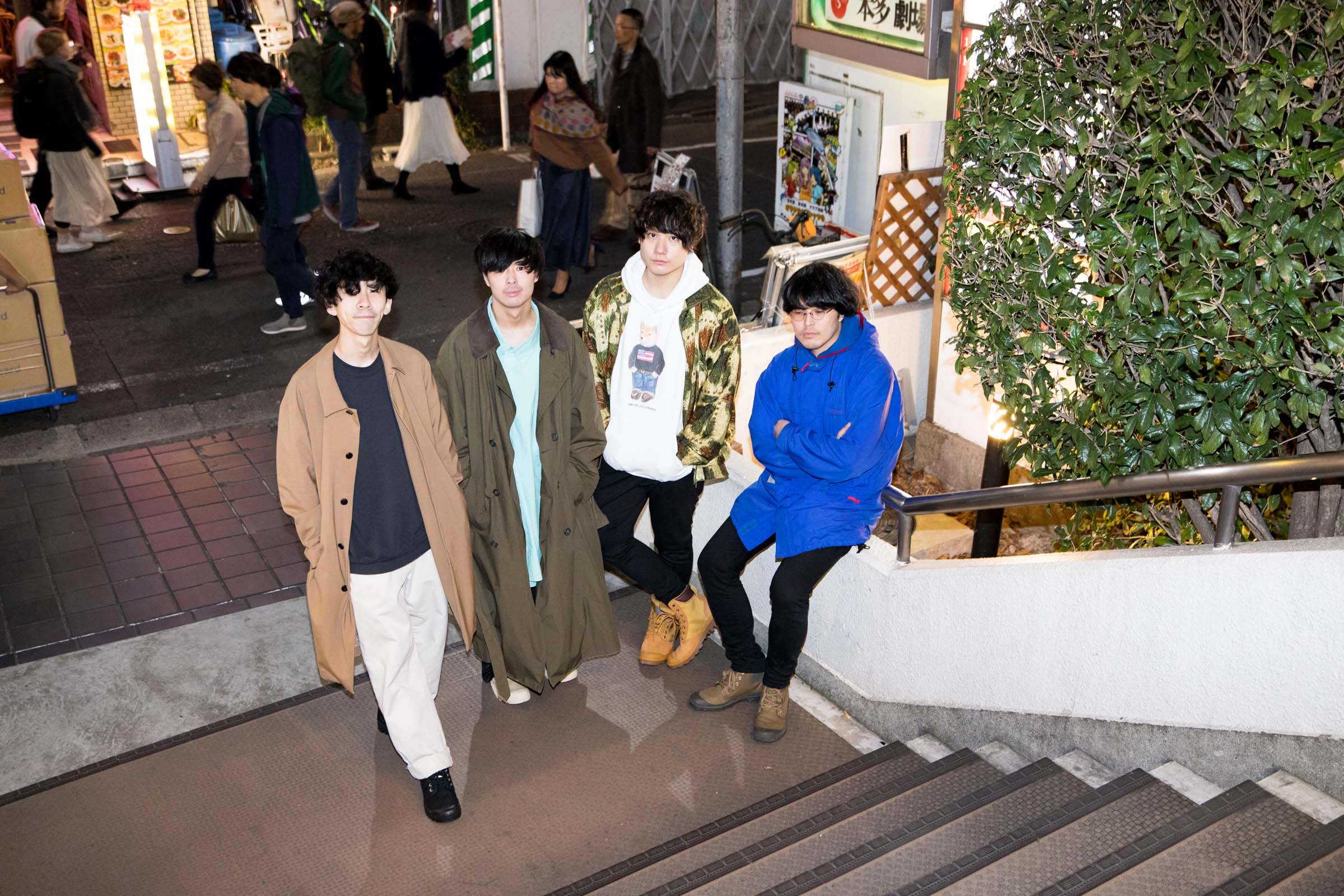 12月1日下北沢で開催された<下北沢にて’18>。ブランドとイベントのコンセプトのひとつである『 City Explorer × 音楽と恋する街』をテーマにさまざまなコラボ―レーションを行い、当日の出演アーティストたちとフォトシューティングを敢行。今回はCLUB251に出演後のThe Floorとともに開催当日に下北沢を探索。出演の感想や音楽とファッションとの関係について話を聞いた。