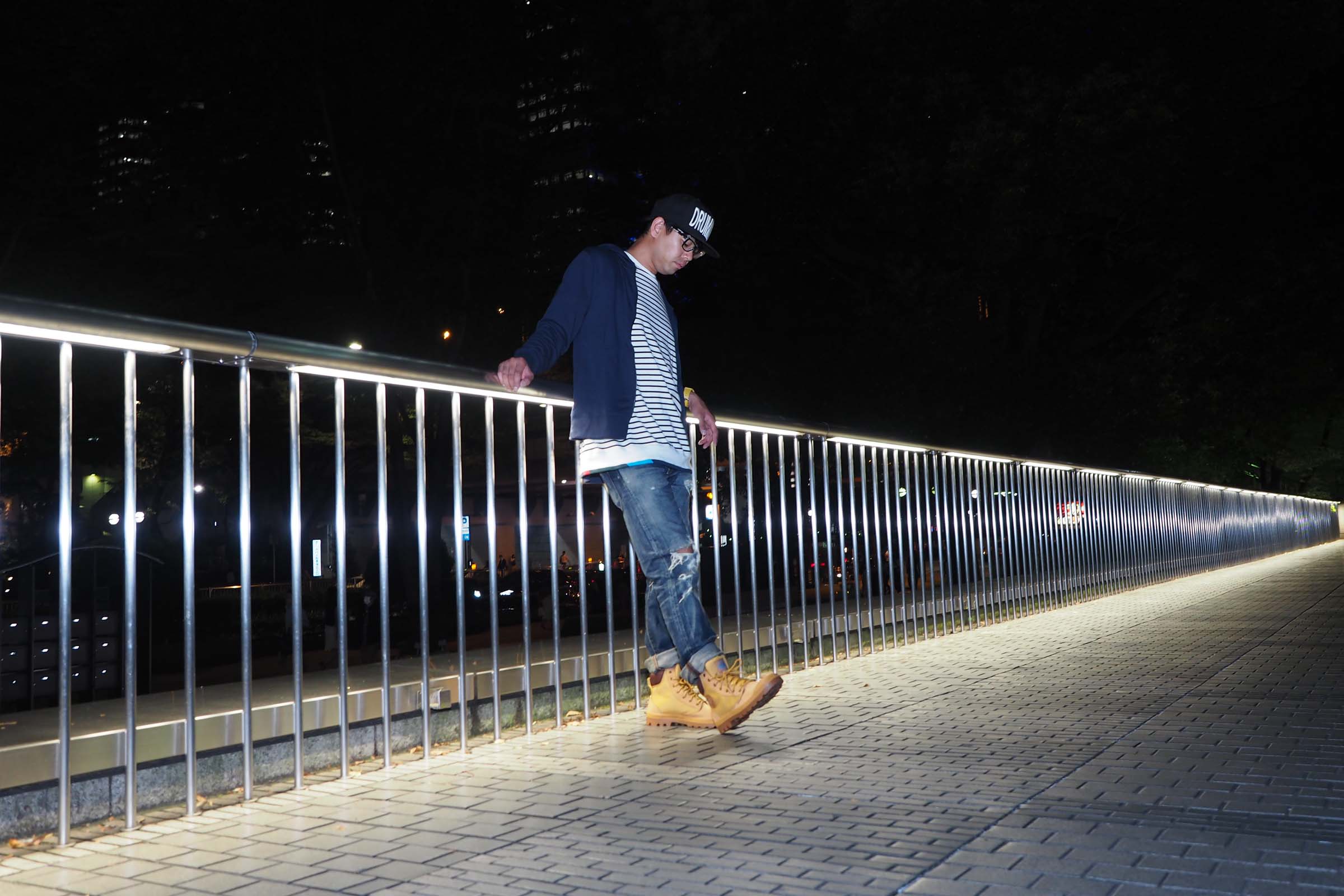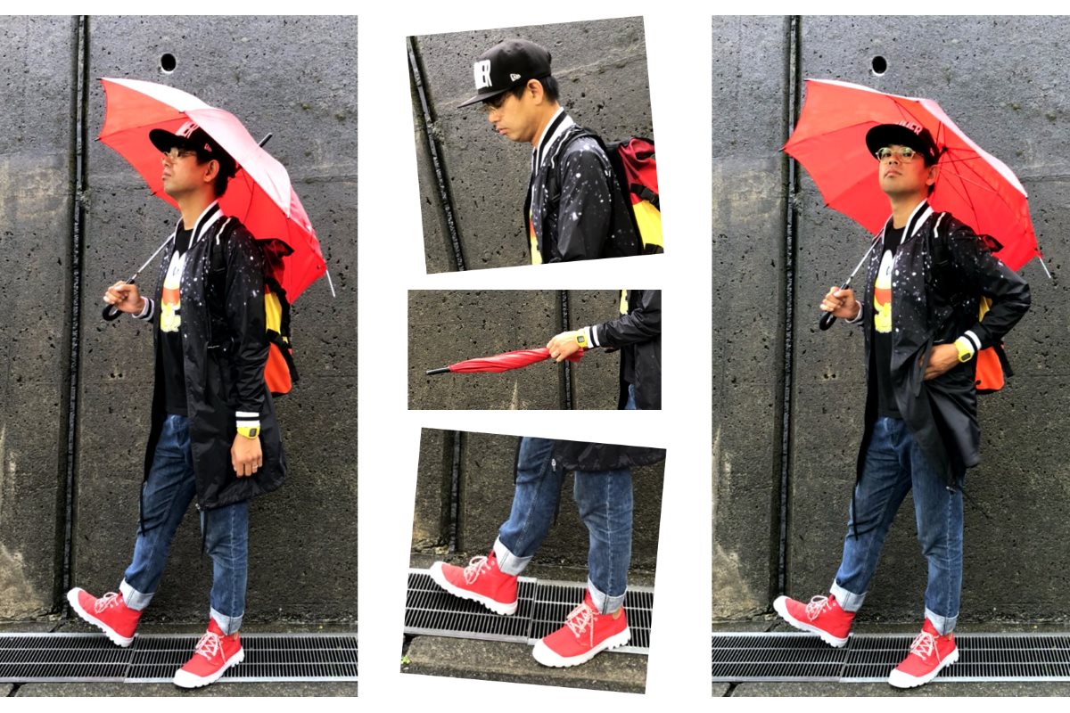 「パドルライトはポップだしファッション性に優れている。何よりも軽いから疲れない。ブーツなのにハイカットスニーカー感覚。その日の気分でコーディネートを決めることが多いから、ファッションによってカラーバリエーションを楽しめるのがいい。レインブーツとして完成されていて色んな場面で使える優れもの。僕は2足持っているけど、赤が好きなのでよく履くのはRed Chili!」