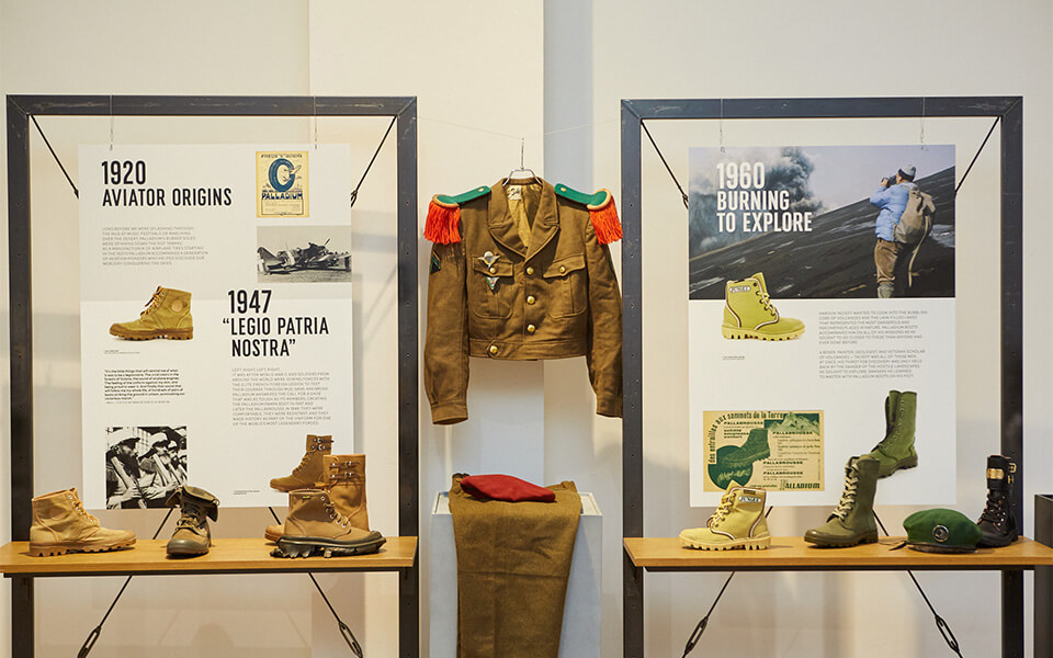 砂漠を行進したり、野外フェスで泥を跳ねあげたりするよりもずっと以前から、PALLADIUMのラバーソールは灼熱の路面を転がっていました。1920年、PALLADIUMは、航空機のタイヤを製造する会社としてフランスで創業。大空を征服し、世界を発見しようという大いなる探検から、パラディウムの歴史は始まりました。 人生は、見知らぬものを知ろうとする人に多くを与えてくれます。70年以上にわたり、PALLADIUMは好奇心が旺盛で、自立した個人、例えば火山学者のハロウン・タジエフやミュージシャンのファレル・ウィリアムスにサービスを提供してきました。