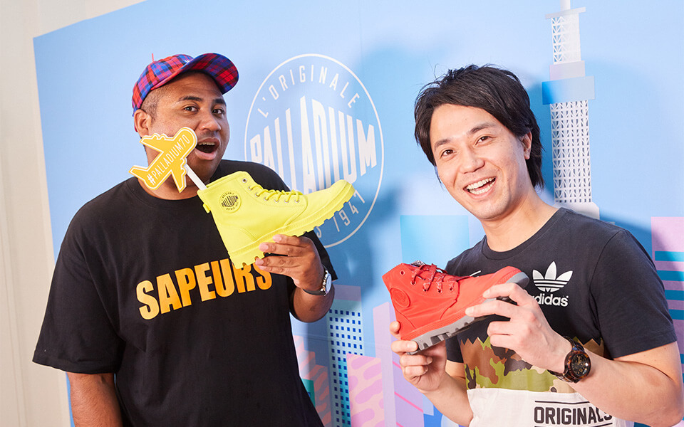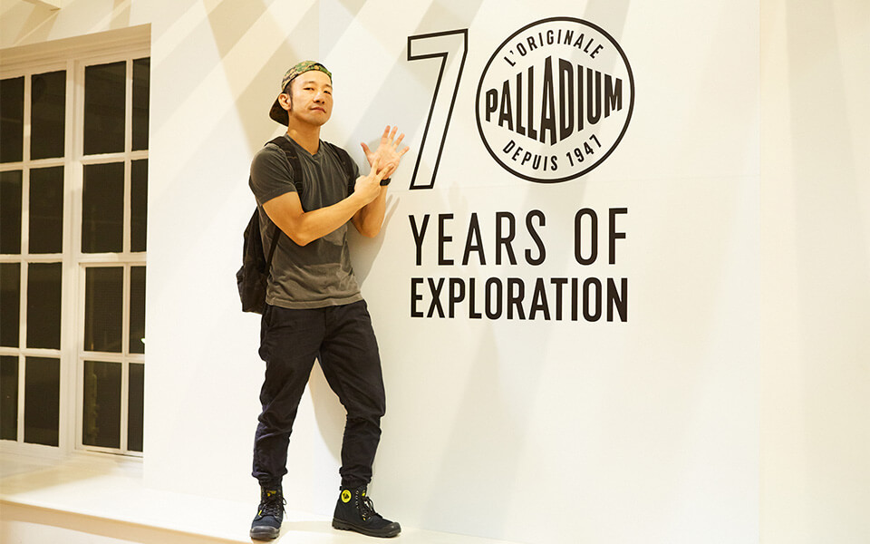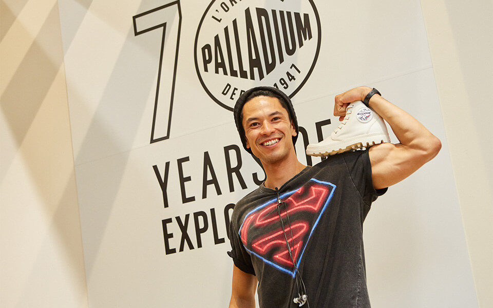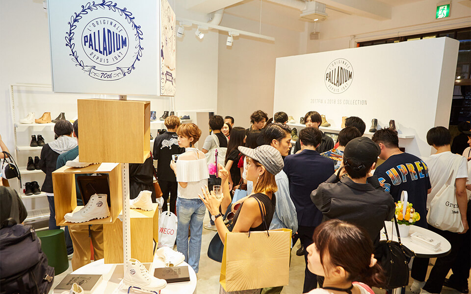 1947年に航空機タイヤの製造をしていた専門知識を活かして、キャンバスブーツをつくり始めたPALLADIUM(パラディウム)は、2017年、ブーツブランドとして70周年を迎えます。世界各国で順次行うアニバーサリーイベントの第一弾を9月14日、東京原宿で行いました。フランス本社からクリストフ・モルテムスクが来日し、70年の歩みとこれからについて発表。フードやドリンク、フォトスポットで賑わった会場には、多くのモデルやミュージシャンも来場しました。