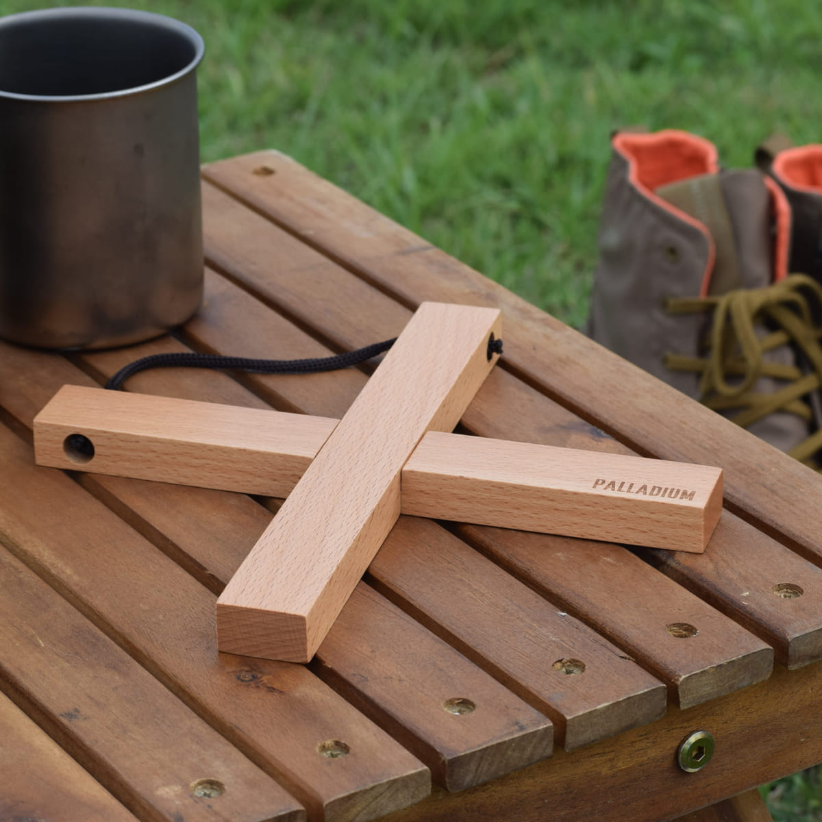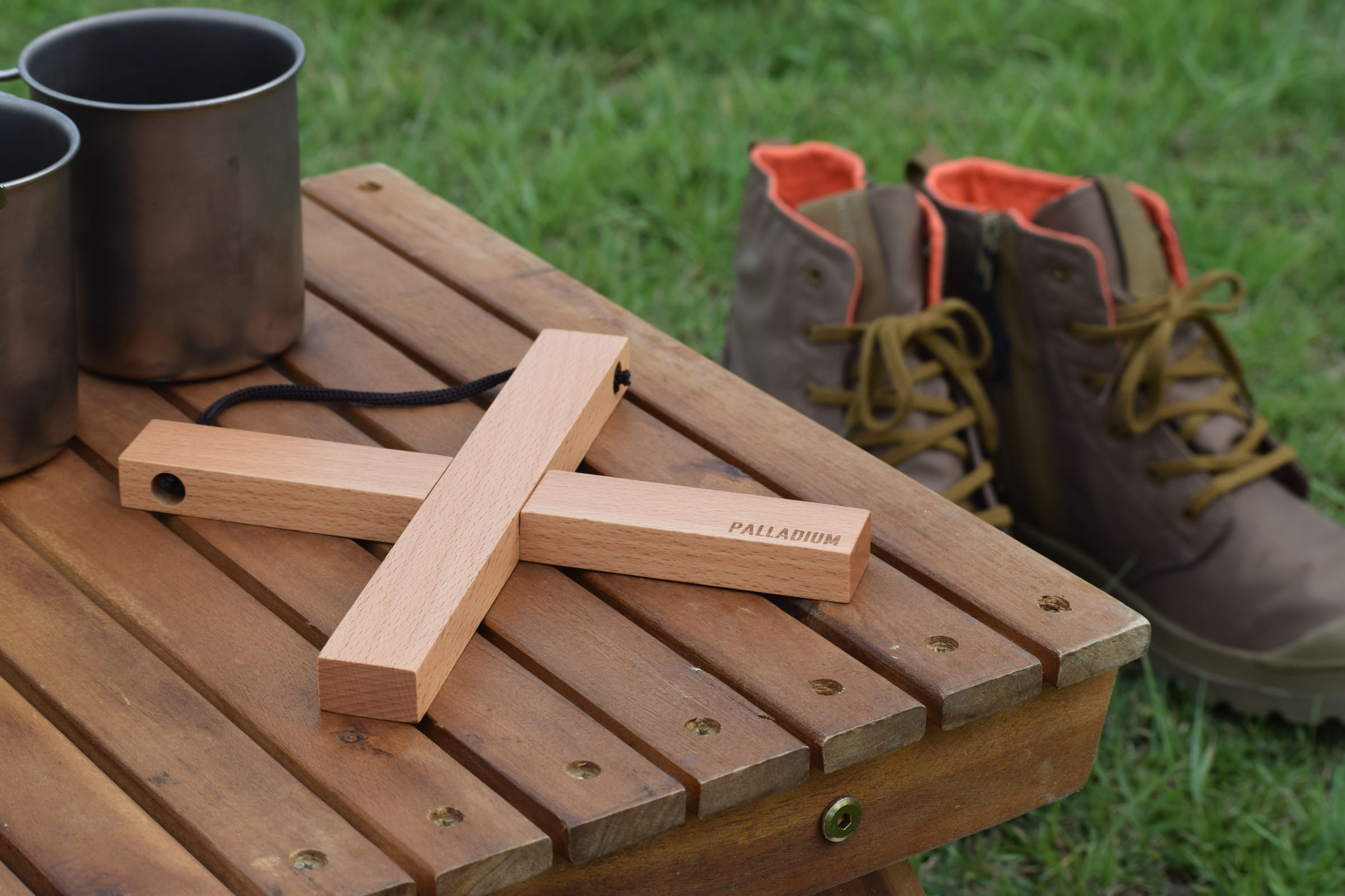 今回、アウトドアに最適な「PAMPA HI SEEKER LITE+ WP+」か「PAMPA OX SEEKER LITE+ WP+」をパラディウムオフィシャルストアでお求めいただくと、アウトドアを楽しめるプラスワンのアイテム「鍋敷き」をプレゼント。自然になじみやすいブナの木製で、お家でポットスタンドにも使えます。