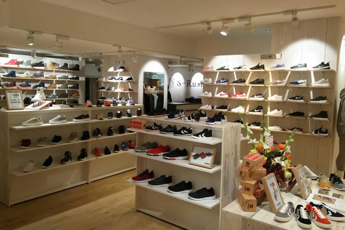 S-Rushは東京・原宿に1号店が2015年2月にオープンし、大阪店、マルイシティ横浜店に続き、今回の出店が4店舗目になります。内観は白を基調に、ウッドをベースにしたヨーロッパ調の落ち着いた雰囲気になっています。S-Rush吉祥寺店は、丸井吉祥寺店の2Fレディースフロアにありながら、男性客も多く、キッズシューズも展開しています。