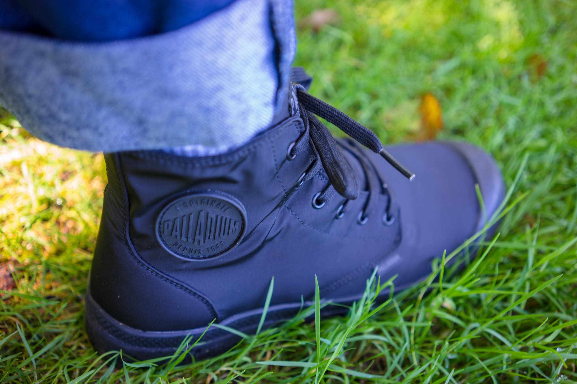 そこで選んだ足元はPALLADIUMのPAMPA PUDDLE LITE+ WPD(パドルプラス)です。何がいいかと言えば、丈夫ながら薄い生地で涼しく軽量。そして、防水でハイカット。シュッとしたシルエットもかっこいい。9月くらいの野外フェスって、夜は結構冷えるけど、昼はTシャツでも汗をかくほど暑くなったりします。そんなときに、昼でも夜でも、雨でも晴れでも対応できるパドルプラスはとても便利。これって、野外フェスをもっと自由に遊ぶために必要な要素だと思うんです。