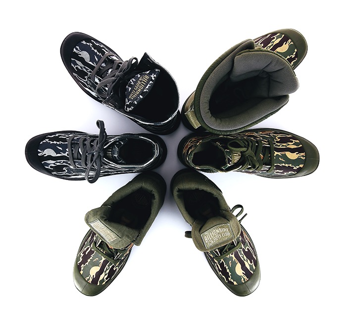 パラディウムは、世界的に影響力のあるブランドとのコラボレーションを行うことができました。70年にわたり、私たちは、刺激的な個人やブランド、コミュニティとコラボすることで、リアルでクリエイティブな探検を推し進めてきました。2011年の東日本大震災の後には、福島原発事故の影響を探るべく、ファレル・ウィリアムスと東京の地下探検を行いました。ミリタリーをベースに持つブランド同士のコラボとなったALPHA INDUSTRIES(アルファインダストリーズ)や、軍の放出品や不良在庫を最先端のコレクションに再生するChristopher Ræbrun(クリストファー・レイバーン) とのリメイドアイテムなど、多くのコラボレーションアイテムを発表してきました。パラディウムは、コラボレーションが、個人を繋ぎ、インスピレーションを与えることに役立つツールであると信じています。