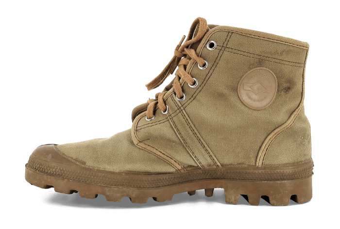 兵士であるということは、昼夜を問わず、歩き、這い、走り、登ることを意味します。それは戦うことだけではなく、世界で最も苛酷な環境で生き抜くことでもあります。パラディウムシューズは、世界各地で、フランスの外国人部隊の行軍とともにありました。私たちのブーツが選ばれたのは、耐久性に優れていながら軽量性を兼ね備え、さらに速乾性に優れるキャンバス素材のブーツだったからです。私たちのブーツが、時代を超えて受け継がれてきたのは、基本的な耐久性というニーズに応えてきたからでした。