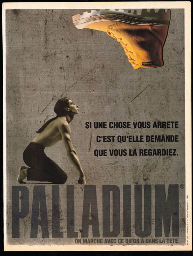 パラディウムスニーカーは、多くの若者が石畳をたたくビートニク精神の象徴として路上にデビューしました。また、パラテニススニーカーは、警察を撹乱する若者の足元で、そのスピードを発揮しました。