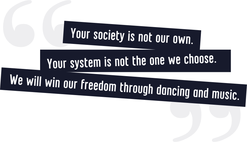 80年代のニューヨークでは、ゲイの人々は変わらず迫害を受けていましたが、彼らはゲイであることを隠そうとはしませんでした。彼らはお互いを励ましあいながら、よりオープンに生きられる環境や平等を求めて戦いました。その中には、自らが異なることを誇りに思っていることを示すように、着飾る人もいました。手首や首に巻いたバンダナは、所属するコミュニティを表し、秘密のコードを伝える役割も果たしました。